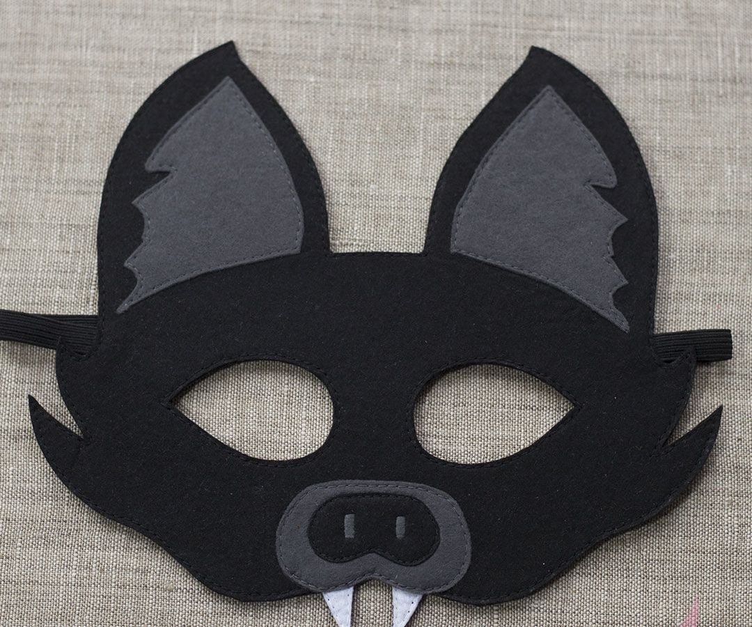 murciélago: use fieltro negro o de cualquier otro color. El contorno se dibuja desde el lado equivocado del material, la pieza de trabajo se corta. Se cortan agujeros para los ojos, se cosen todos los bordes con un hilo de contraste en una máquina de coser, se unen los lazos desde los lados;