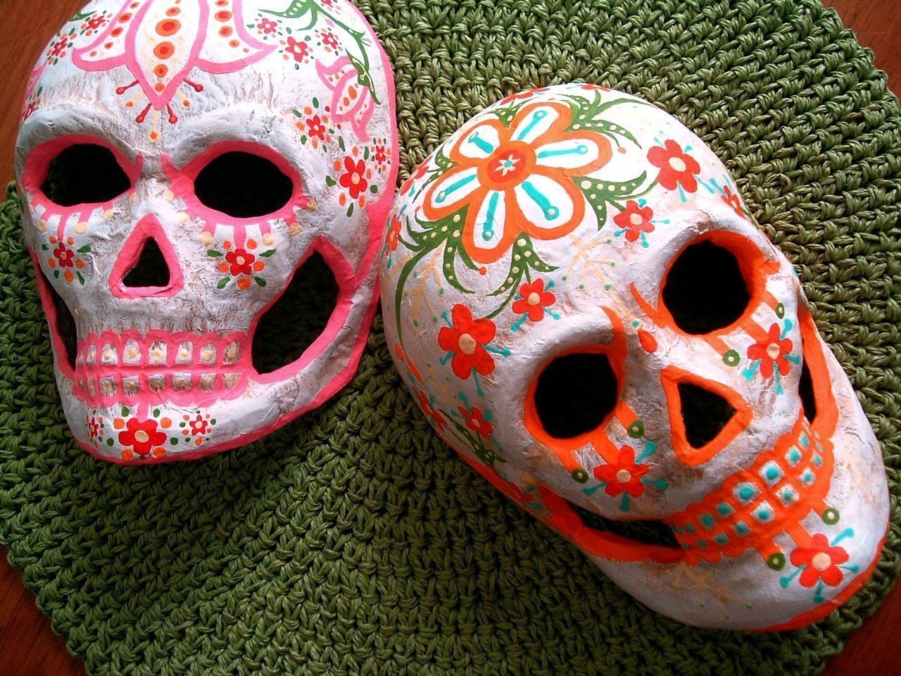 Es fácil hacer una máscara de calavera que cubra la parte superior de la cara con arcilla polimérica blanca y gris. Primero debe crear una imagen del producto deseado.La arcilla se aplica suavemente en la cara, se engrasa con grasa o crema, dejando hendiduras para los ojos, un receso para la nariz. La capa está hecha de unos cinco milímetros y los bordes del producto son desiguales, como si imitaran huesos reales. Todos los contornos se dibujan cuidadosamente con pinturas, las irregularidades necesarias, las articulaciones de los "huesos" del cráneo se dibujan con palillos de dientes o pilas especiales. El diseño se realiza en horno, barnizado. Se adjunta una barra de soporte al costado del producto, que se puede diseñar debajo del brazo de un esqueleto, también moldeado de plástico.