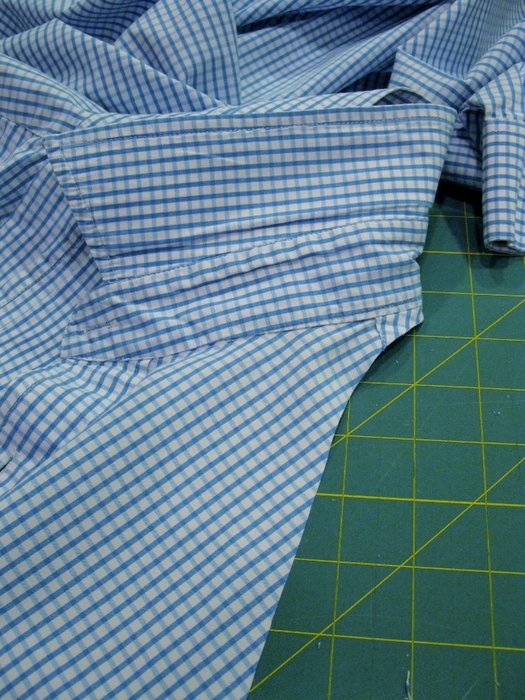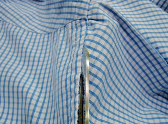 Preparamos la espalda, cortamos el cuello, las mangas;