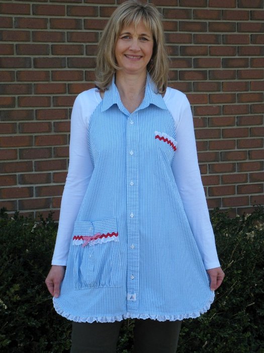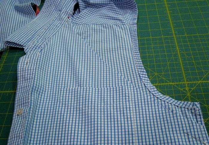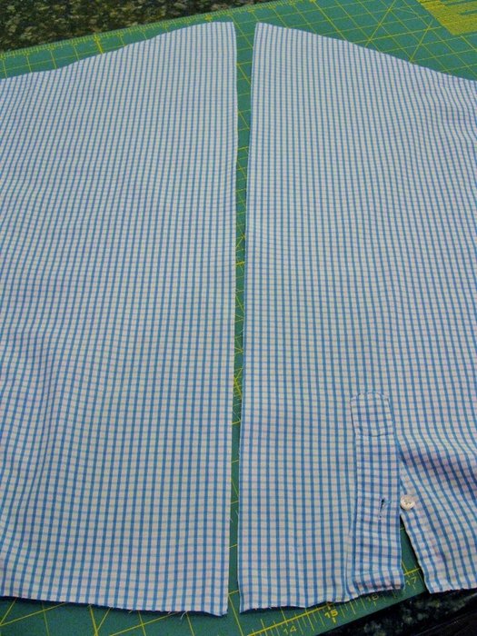 Puede coser un hermoso delantal original de cualquier ropa que ya no se use por alguna de las razones. La camisa de un hombre es adecuada para este propósito justo a tiempo, gracias a un corte sólido de la espalda y una gran cantidad de material. Hay varias opciones de corte simples (collar, prefabricado). Lo más simple es desde atrás. La siguiente clase maestra ayudará a crear patrones correctamente:
