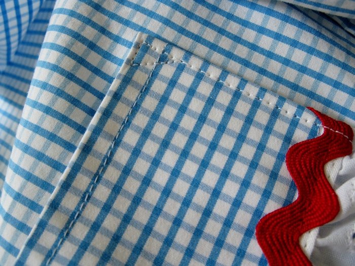 Para obtener un producto más práctico, puede coserle bolsillos, en los que se colocan cosas pequeñas, liberando las manos de las bagatelas. Se utiliza el mismo material para coserlo que en la fabricación del delantal.