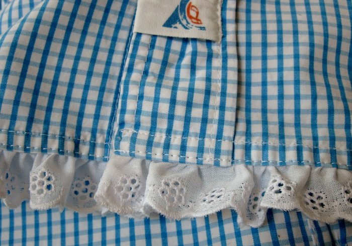 Realizamos la decoración de los bordes del babero, conectamos con correas;