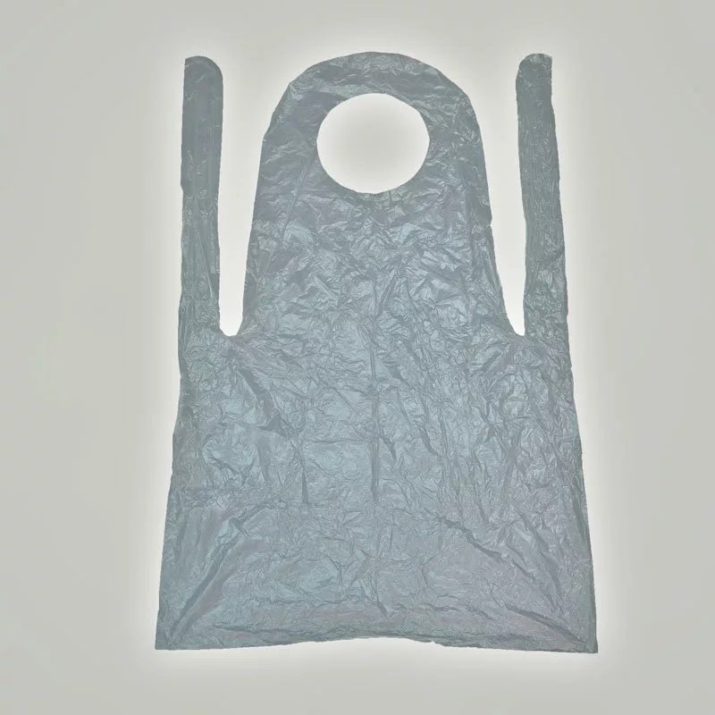 Para algunos casos imprevistos, existe una gran idea para coser un delantal hecho de polietileno, que siempre está a mano. Pueden ser bolsas simples, envases, material de envoltura. La protección simple simplemente puede desecharse después de su uso.