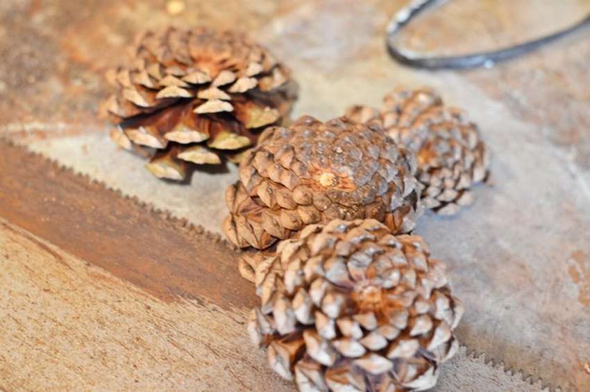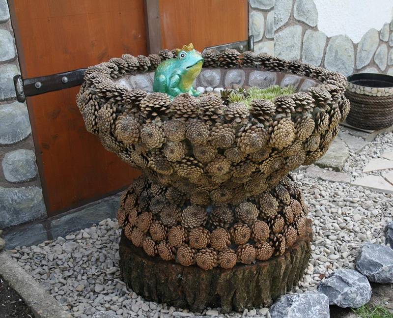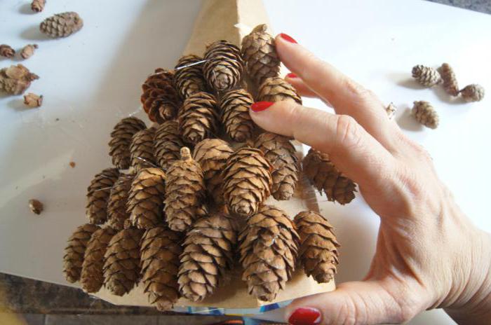 La estructura ensamblada a partir de tales partes no se deforma durante la operación. Es aconsejable utilizar elementos de la misma forma que no estén dañados por las plagas, es problemático combinar el abeto con el pino, y los conos de aliso son adecuados solo para la decoración externa de un objeto terminado.