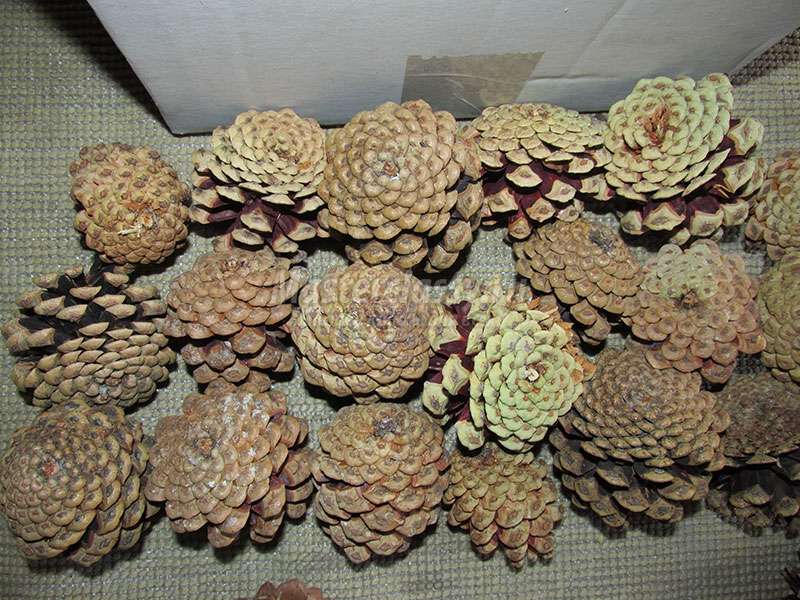 El número de conos depende del tamaño del producto. Es necesario recolectar solo todo, limpio, no dañado por plagas.Es aconsejable usar conos no "frescos", solo recolectados, pero aquellos que han estado acostados en un lugar seco durante un par de meses, se secaron bien, se abrieron. Las frutas de pino frescas se clasifican por tamaño, se secan a la sombra debajo de un dosel, se extienden en un periódico para que no se toquen entre sí.