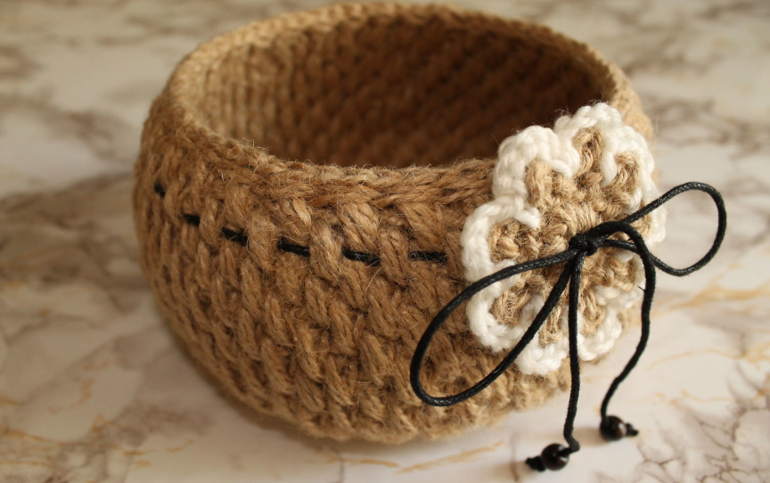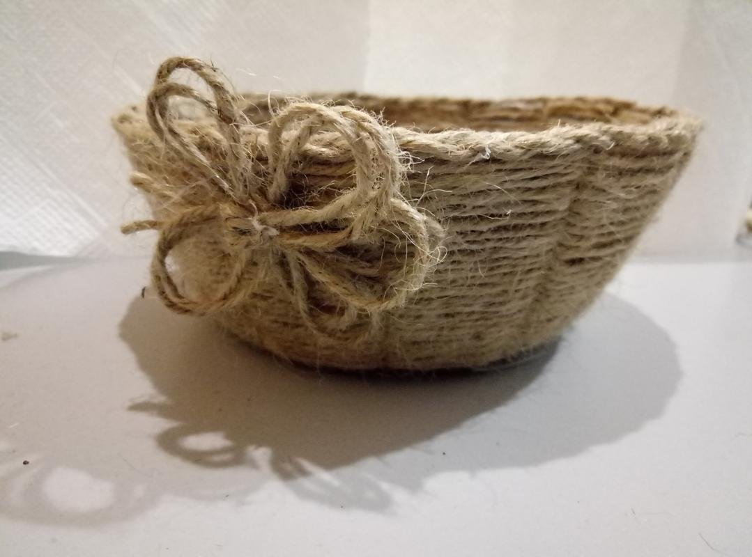 Las cestas de cuerdas gruesas son muy decorativas.Para el trabajo, necesitará una versión de lino o cáñamo, de al menos cinco mm de grosor, de 22 a 27 metros de largo. Paso a paso, el proceso se ve así: