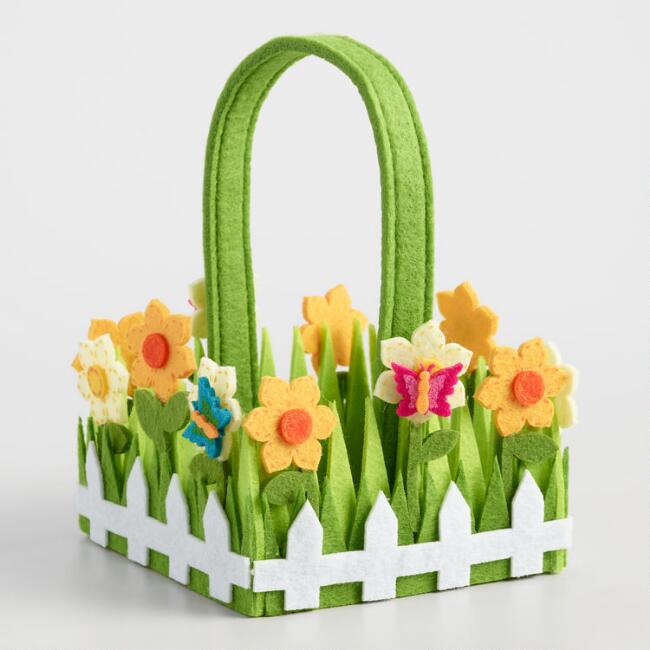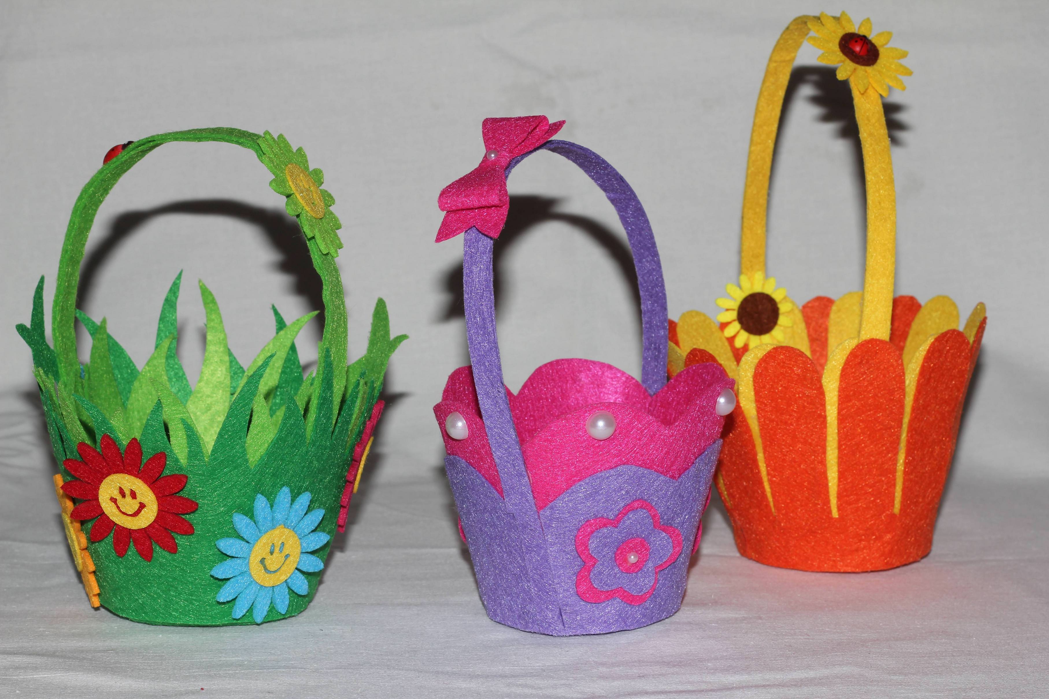 Otra forma de ejecutar una canasta: las tiras de colores se cortan de fieltro, de dos o tres cm de ancho, se entrelazan entre sí. El producto tiene un fondo cuadrado, mango ancho.