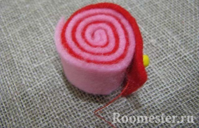 Ahora, a su vez, cose todos los círculos en el centro usando una máquina de coser. Todas las partes deben estar conectadas por una sola costura. En una máquina de escribir, esto es más fácil y rápido, pero también es adecuada una opción manual. La longitud de la guirnalda se ajusta como se desee. En los extremos, es aconsejable dejar un hilo o coser un lazo para que la decoración se pueda arreglar.