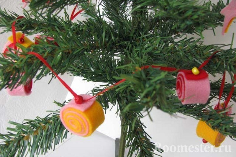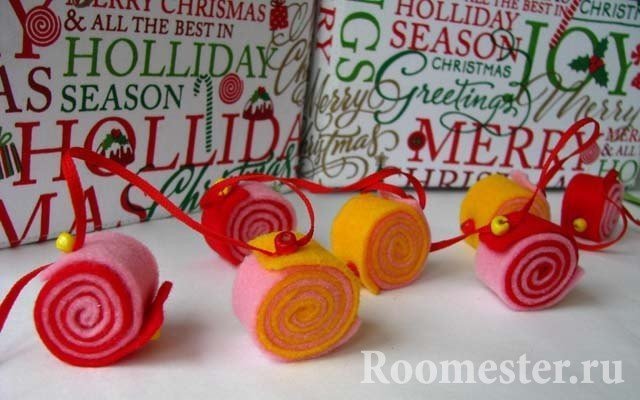Un espacio en blanco para guirnaldas son muchos círculos cortados de fieltro. Es aconsejable que sean diferentes en color y tamaño. Aquellos que lo deseen pueden agregar una guirnalda con estrellas, corazones, rombos y otras formas del mismo material.