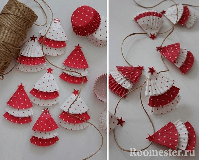 Consejo! Intente combinar varios elementos en una guirnalda, por ejemplo, árboles de Navidad y copos de nieve hechos de manera diferente.