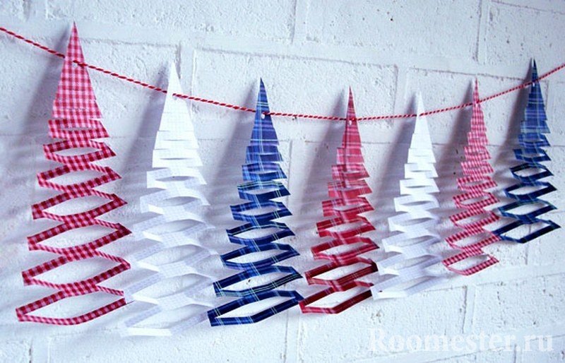 Una guirnalda es una cuerda en la que se fijan pequeños árboles de Navidad de tres niveles con formas de colores. Hacerlos es muy simple. Necesitarás: