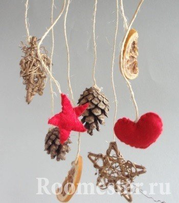 Esta guirnalda se complementará maravillosamente con estrellas de la vid, pintadas en color dorado o ramas de abeto. El producto terminado se puede cubrir en lugares con pintura dorada o plateada, nieve artificial.