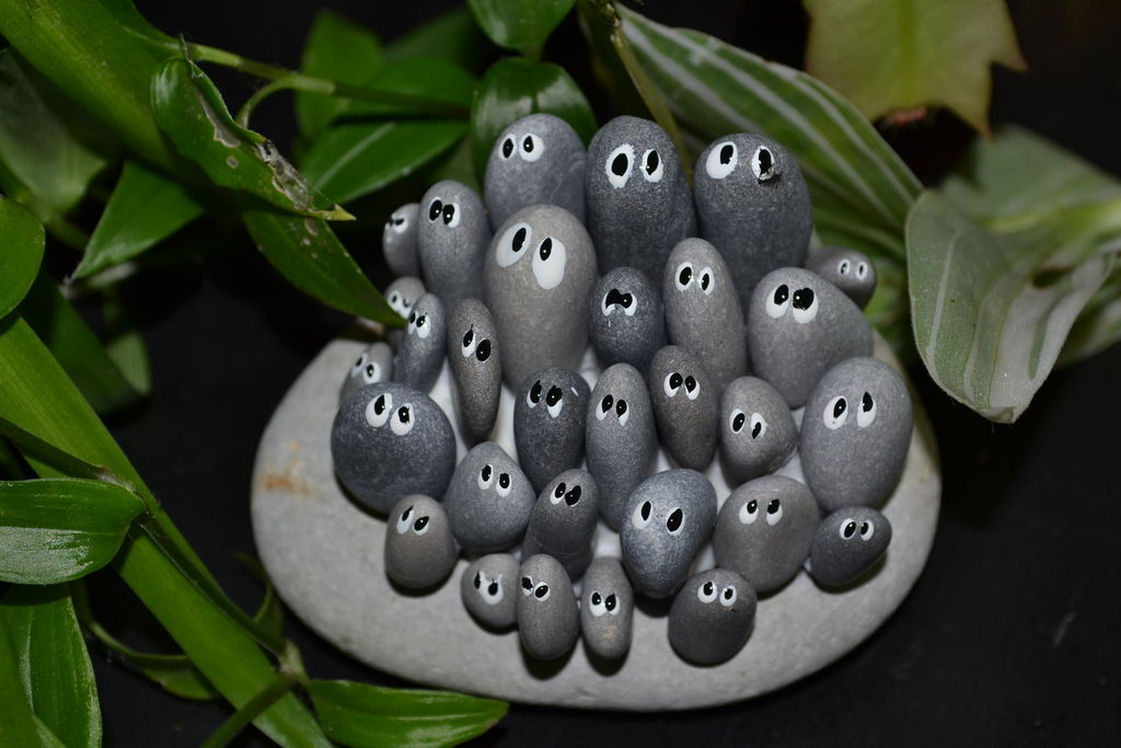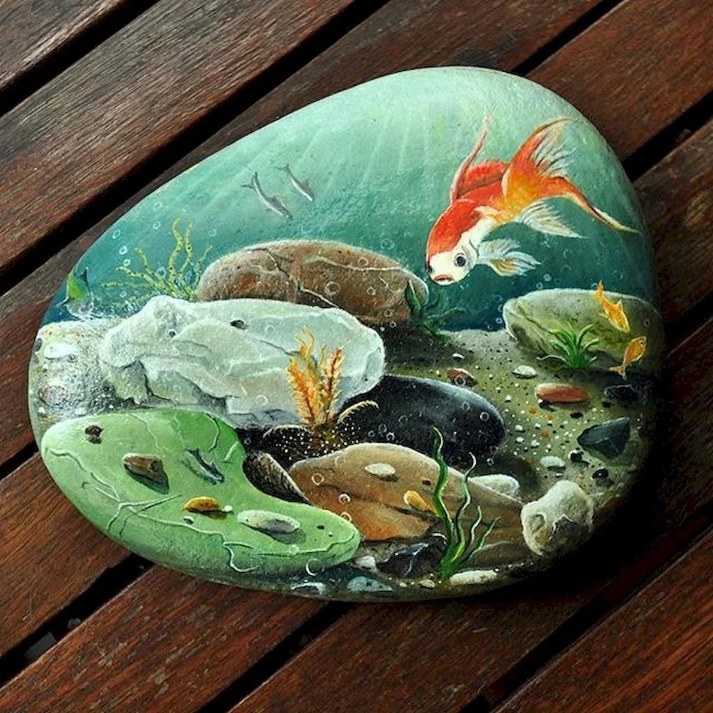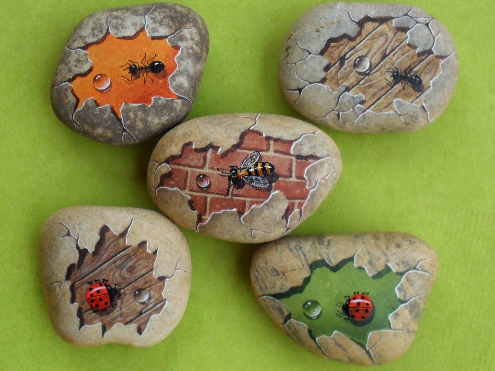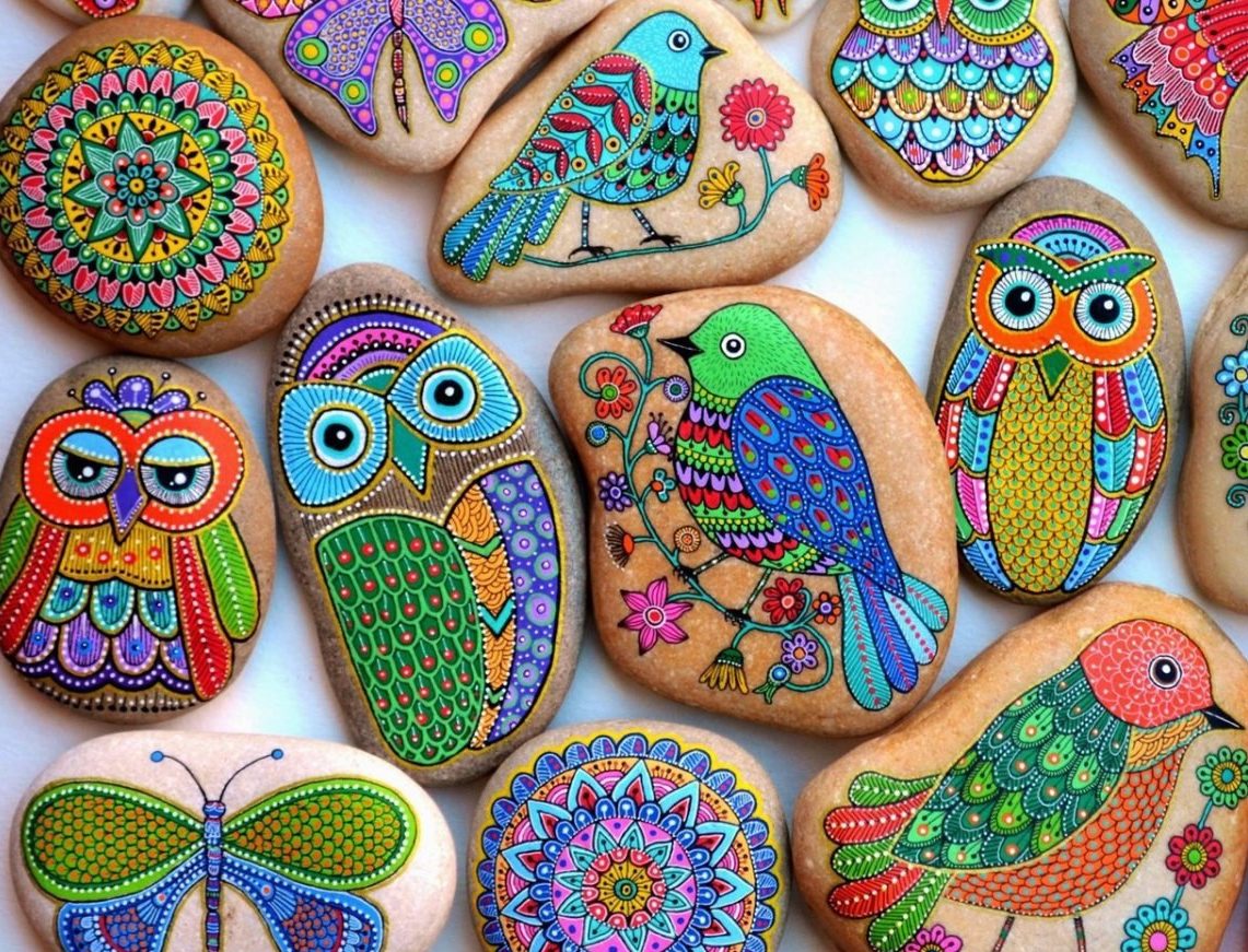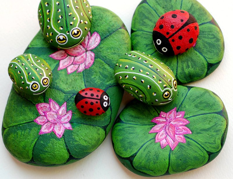Los tipos más populares de piedras utilizadas para la artesanía son los guijarros de mar y río. Sus adultos y niños pueden recogerlo fácilmente durante las vacaciones de verano o mientras caminan por el río o el mar en cualquier otra época del año. Debido a la exposición constante al agua, tienen una forma redondeada, una superficie lisa. La porosidad mínima de los guijarros proporciona una adhesión de alta calidad a la superficie de la piedra de cualquier barniz, pintura. Ideal para el trabajo se consideran piedras casi planas con formas uniformes: ovaladas, circulares. Pero también a partir de piedras volumétricas puedes hacer las artesanías más realistas en forma de una variedad de animales, figuras.