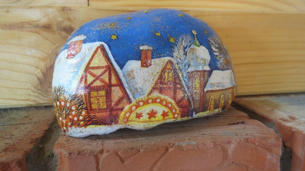 Cuando el pegamento se endurece, puede comenzar a manchar las piedras. Esto puede ser una imagen de un patrón, silueta. Para el trabajo, se utiliza pintura acrílica.