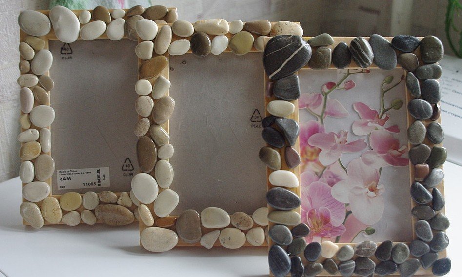 Para el trabajo, se recomienda usar piedras de diferentes tamaños y colores. Además, el marco se puede pegar con estrellas secas o conchas ordinarias.