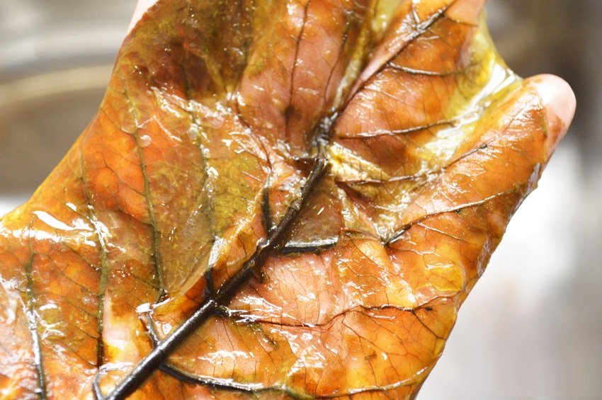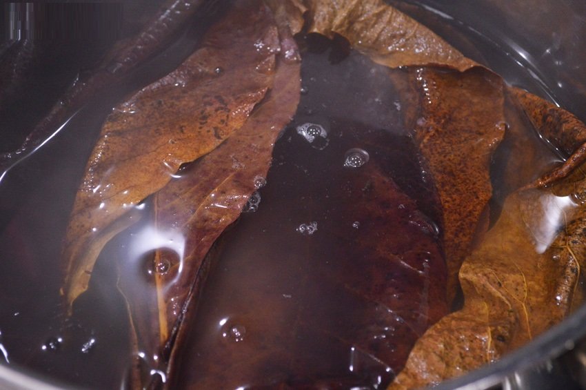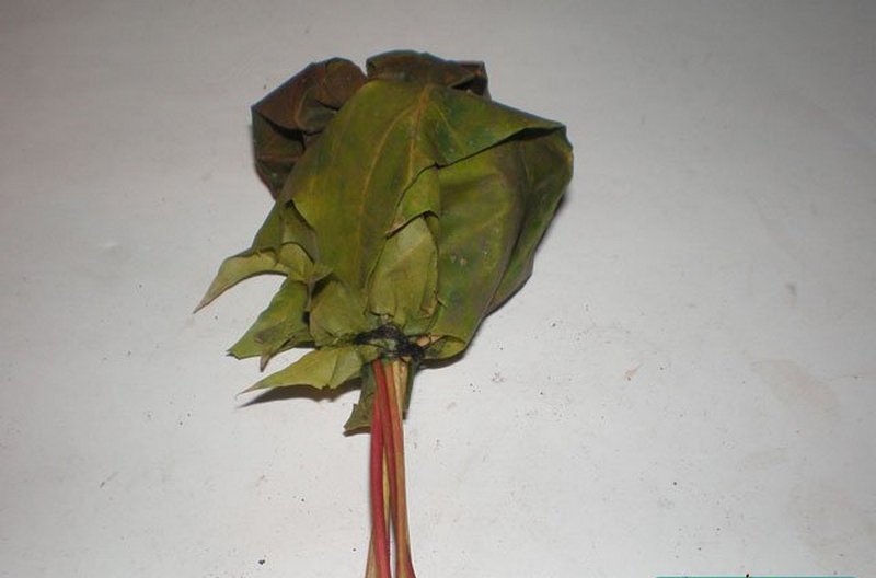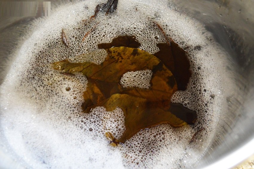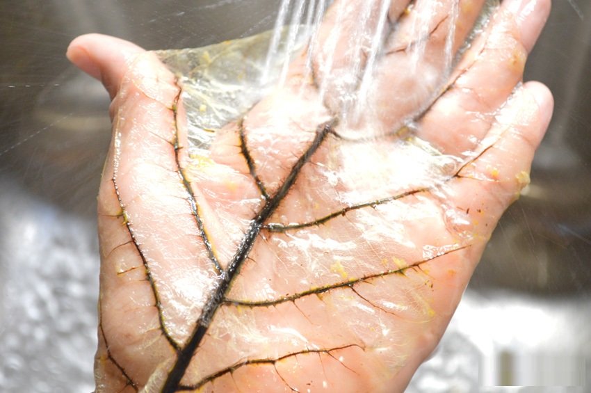 Las hojas se hierven durante aproximadamente media hora en una solución concentrada de carbonato de sodio. Siga las instrucciones y evite el contacto del líquido con la piel expuesta. Luego se retiran cuidadosamente del recipiente, se colocan sobre un paño limpio y las áreas suavizadas entre las venas se eliminan con un cepillo. El "esqueleto" resultante se coloca entre dos hojas de papel horizontales y se seca.