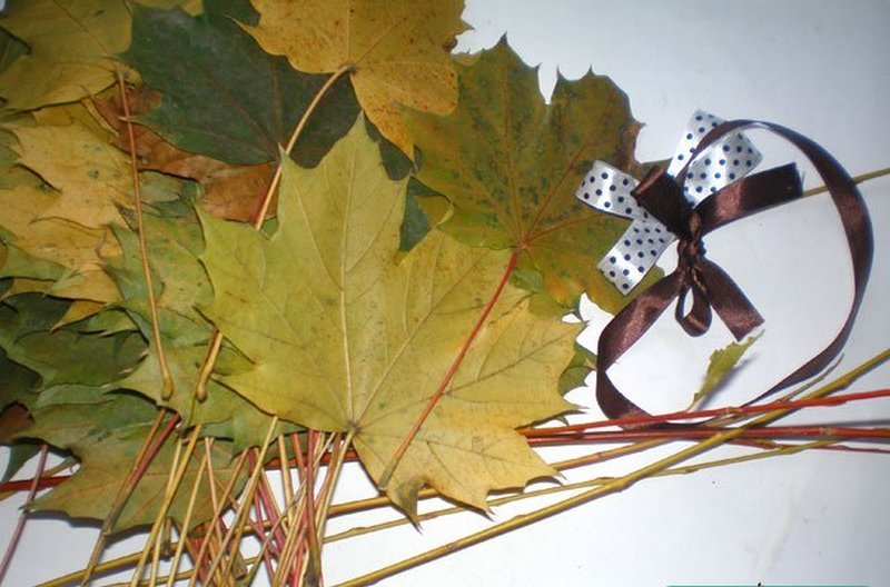 Las hojas de arce caídas se consideran un símbolo del otoño. Son fáciles de marcar en el parque más cercano o en el jardín botánico de la ciudad. La forma más fácil de recoger una rosa de las hojas de arce es una sutil flor de verano. Los brotes rojos y amarillos se verán más espectaculares.La combinación de tonos naturales "otoñales" dará un ramo de naturalidad. Para colorear las hojas, use pinturas en aerosol. La gouache, la acuarela o el temple no funcionarán para estos fines. Para trabajar, necesitarás: