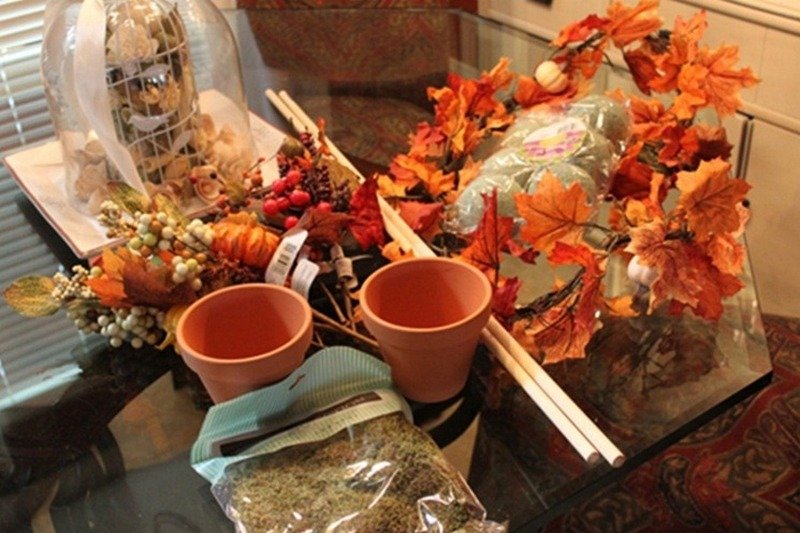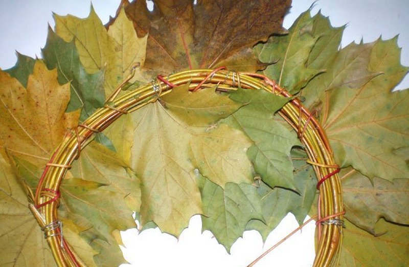 Una corona de otoño en una puerta generalmente se cuelga en la víspera del Día de Todos los Santos. Primero forme la base para una corona de ramas y alambres. Para que la composición no se desmorone, se tira en varios lugares con hilos o hilo de pescar. Entonces la base comienza a llenarse de decoración. Comience con las hojas. Se envuelven cuidadosamente, se tuercen en tubos y se trituran para obtener una textura hermosa.Luego, las hojas se pegan a las ramas de la base. Racimos de viburnum, cajas con semillas de physalis, conos, bellotas, calabazas en miniatura, pequeñas bolas de Año Nuevo (oro y plata son adecuadas), figuras de animales y personas están atadas con hilo a una corona. El toque final en la composición será un exuberante arco de arpillera.