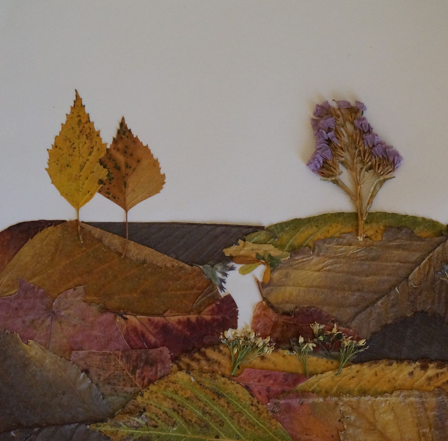 Una imagen o un panel de hojas secas se hace de manera bastante simple. Este es un tema común para las manualidades infantiles. Para el trabajo, necesita una base (generalmente de madera). Por ejemplo, un tablero de aglomerado o tablero de MDF es adecuado. Para manualidades infantiles, una hoja de papel grueso A4 es suficiente. El dibujo concebido se transfiere a su superficie con un lápiz. Para la primera experiencia, es mejor elegir objetos naturales lacónicos: hoja, árbol, sol, flor. Si el maestro tiene talentos artísticos muy ajustados, puede usar plantillas. Luego, la imagen dentro del contorno se unta con pegamento. En una superficie pegajosa, los folletos se aplican secuencialmente. Desde arriba necesitan ser presionados con algo pesado. Después de que el panel se haya secado, se enmarca y se cuelga en la pared.