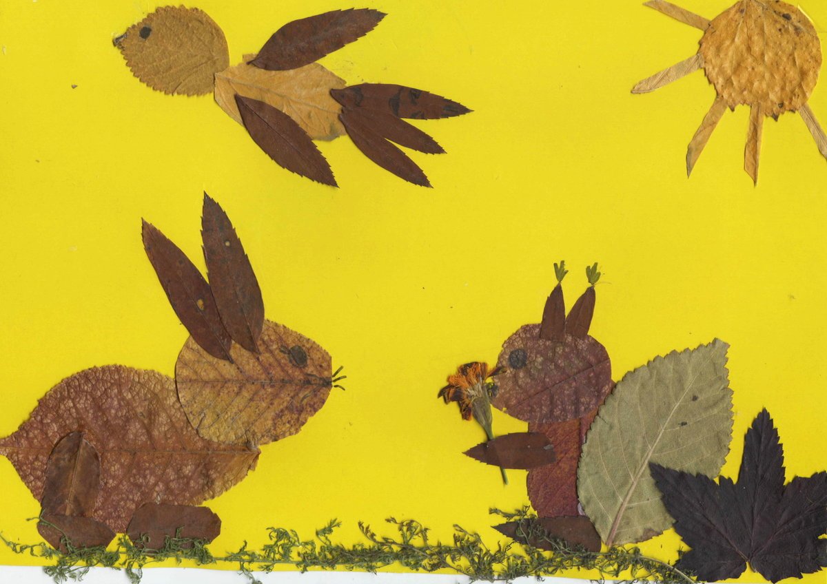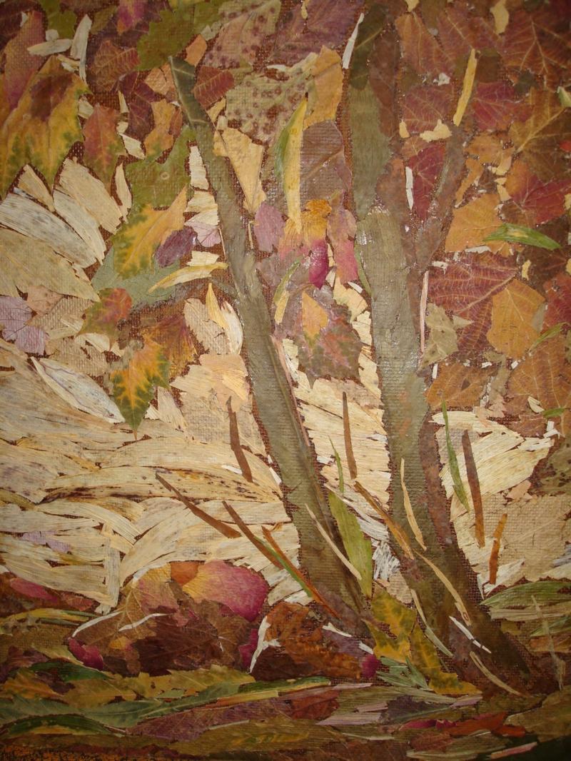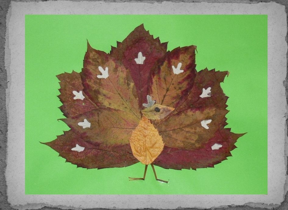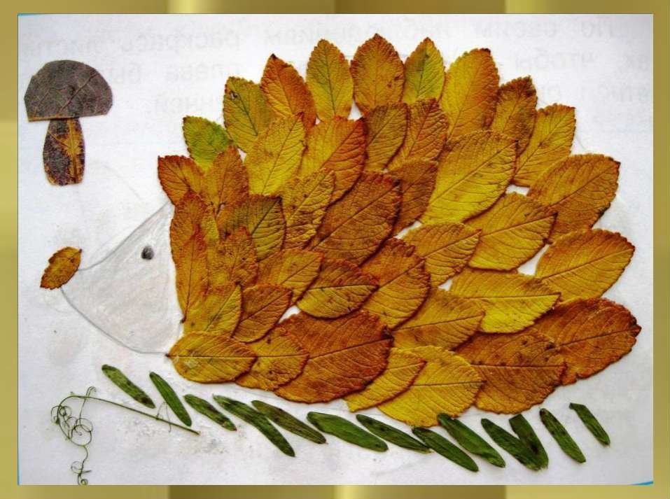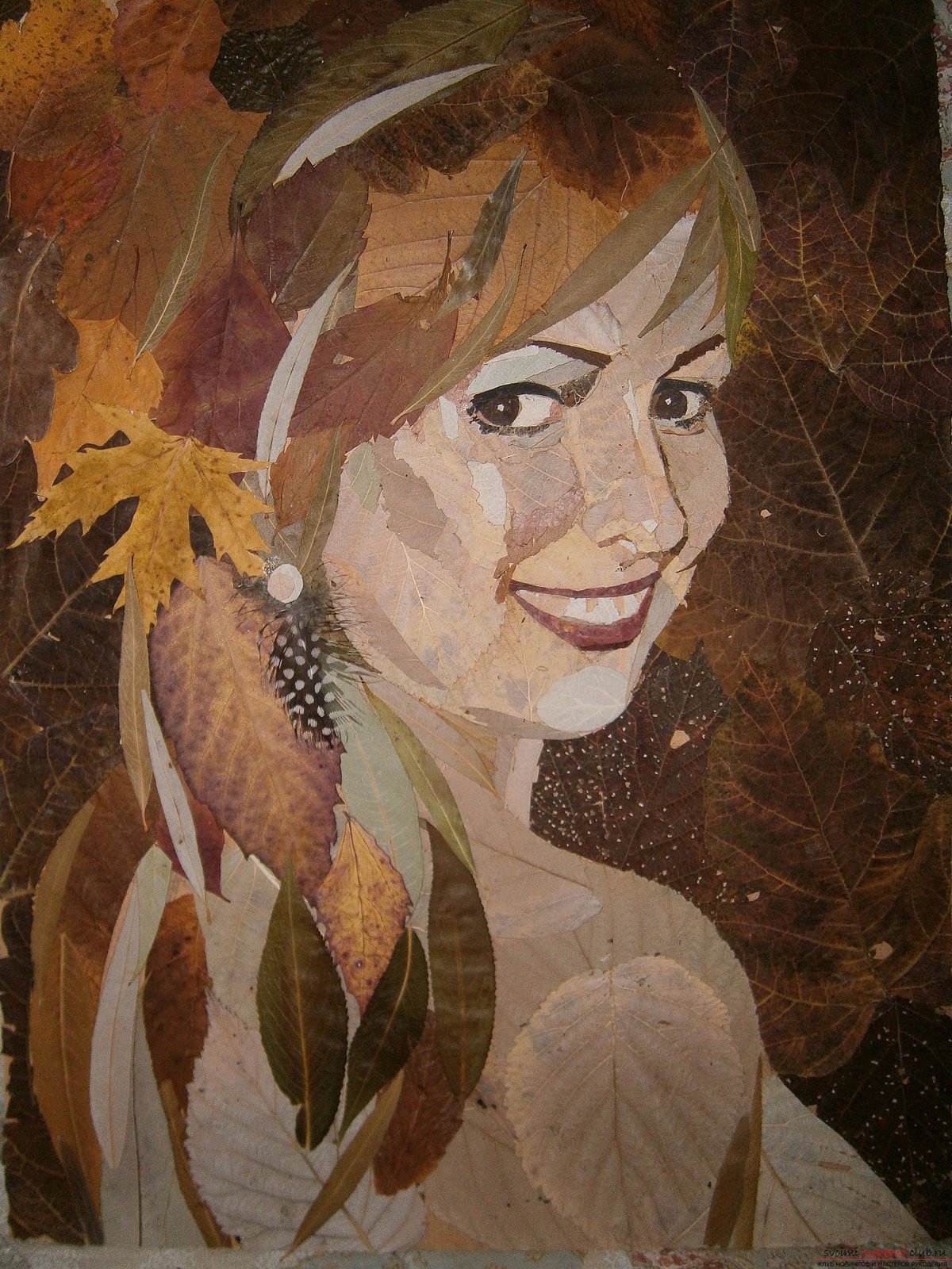 Aplicación: dibujar una imagen a partir de piezas separadas de varios materiales. Este tipo de creatividad se considera infantil, ya que las parcelas lacónicas (figuras de animales o paisajes simples) generalmente se eligen para el trabajo. Sin embargo, nada impide que un adulto cree una imagen de "mosaico" de complejidad sin precedentes, aunque es mejor que los principiantes intenten con formas primitivas. De las hojas son grandes animales. Las hojas de serbal o nuez pegadas en capas forman las exuberantes alas de mariposa. Su cuerpo puede estar hecho de aretes de abedul. Una tecnología similar hace que los erizos y los peces. Sus agujas y escamas son reemplazadas por hojas afiladas (nuez, carpe), que están pegadas en capas entre sí. Un par de pedazos de corteza imitarán a un árbol, y delgadas hojas de hierba se convertirán en algas que se mecen. Un paraguas divertido será el último toque en la imagen de otoño. Se puede hacer de una hoja de arce recortada. Los paraguas hechos de piezas de fieltro multicolores se verán cálidos, cómodos y muy hogareños. La melena exuberante de un león o la lujosa cola de pavo real están hechas de hojas de arce.Sus puntas afiladas son más como un cabello grueso y un ramo de plumas. El símbolo de la sabiduría: un búho es más fácil de hacer con hojas delgadas de sauce. La aplicación terminada se coloca en el marco de la foto, pero el marco de bricolaje hecho de ramas se verá mucho más hermoso. Puedes usar abedul, roble, bambú. Las ramitas protegen cuidadosamente de los nudos y los residuos de la corteza, después de lo cual forman un rectángulo, cuyas esquinas están atadas con hilos de yute, uniendo los componentes.