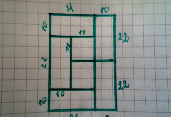- a lo largo de los bordes del acoplamiento con otros planos, en ambos lados dibujamos líneas hacia abajo, sin llevar diez centímetros a la base inferior;