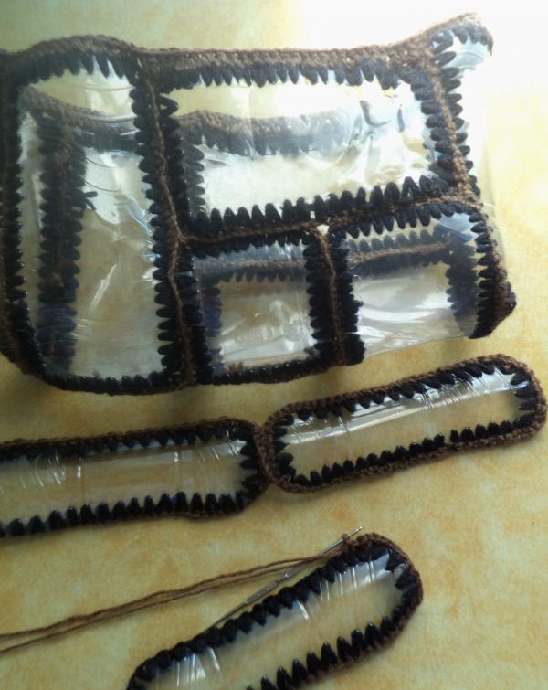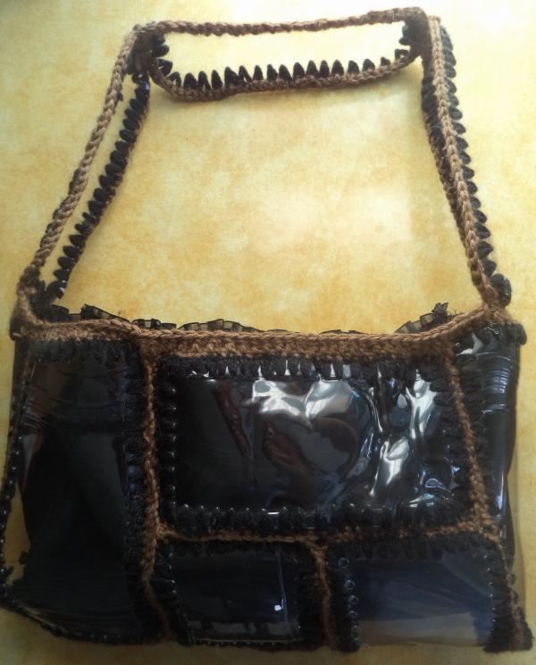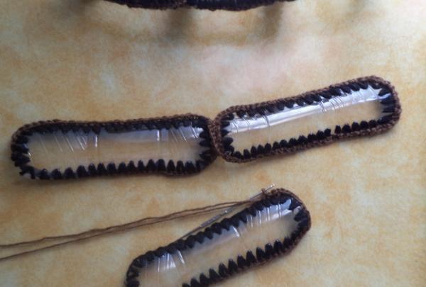 Las cosas son mucho más complicadas con las bolsas de hilo. Para crearlo, la botella debe disolverse en tiras delgadas, a partir de las cuales se hacen hilos bastante fuertes. Se requerirán herramientas y equipos especiales. Luego, usando un gancho, se teje una malla. Se pueden usar tubos flexibles en las manijas para un uso cómodo.