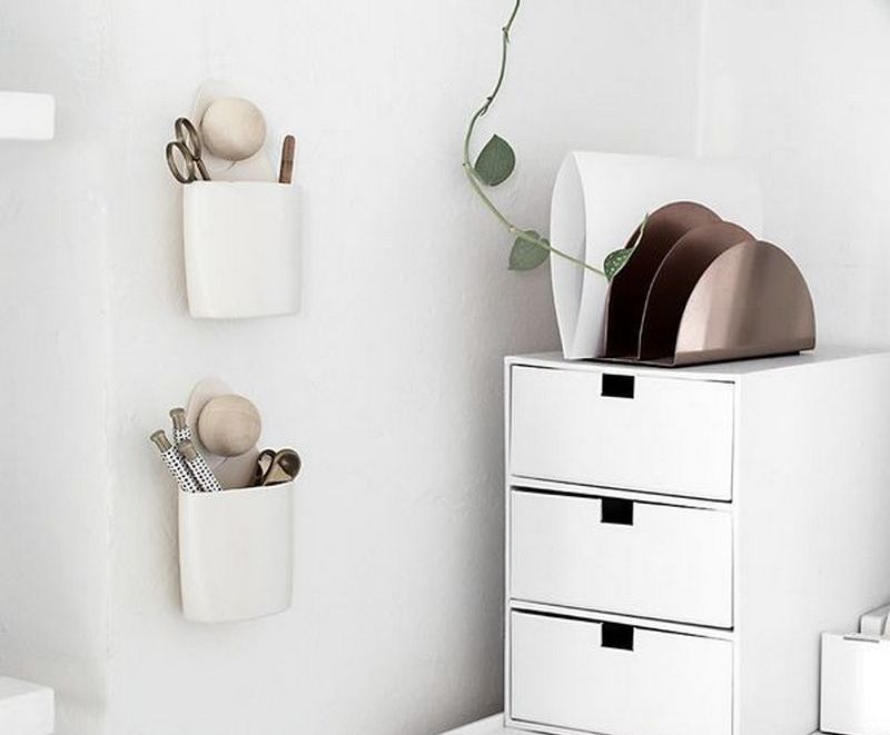 Desde una pequeña botella de plástico puedes hacer un buen organizador para la oficina. Dependiendo del tipo de contenedor, puede ser una versión de escritorio o de pared. No se apresure a deshacerse de los frascos vacíos de champú. El plástico brillante puede ser la materia prima para un organizador divertido. Primero debe cortar el cuello de las botellas lo más cerca posible de la parte de apertura, marcar los lugares para futuras secciones rizadas. Cortando el plástico por un lado con una cerca, puedes hacer un monstruo divertido. La decoración se adaptará a los más diversos: tela, papel de aluminio, papel. Puede usar cualquier material adhesivo libremente. El organizador colgante está unido a la pared en una cinta de doble cara.