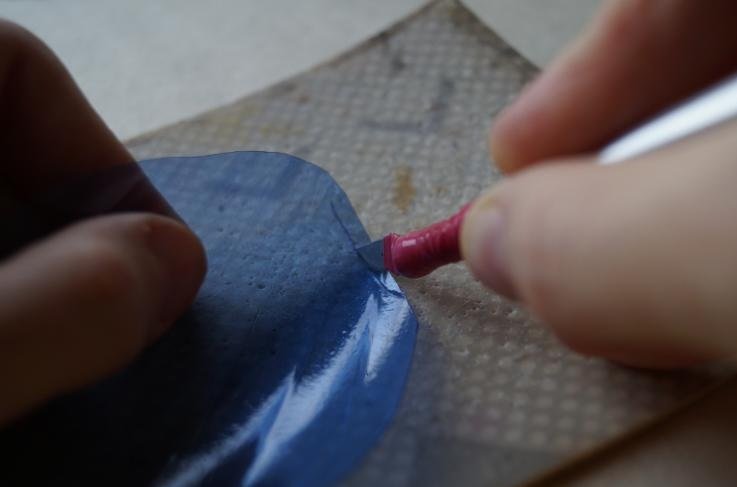 Para marcar, recortamos el producto futuro con un cuchillo de oficina.