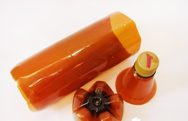 Desde el fondo de la botella puedes hacer un soporte de vela en forma de tableta.Llenamos el recipiente con harina, arena de color o lo llenamos con agua, ponemos una luz en el centro. Para hacer un candelabro decorativo original para una vela recta, deberá conectar dos cuellos de plástico y arreglarlo. Corta los pétalos en las rodajas y encierra en un círculo su contorno con un marcador negro.