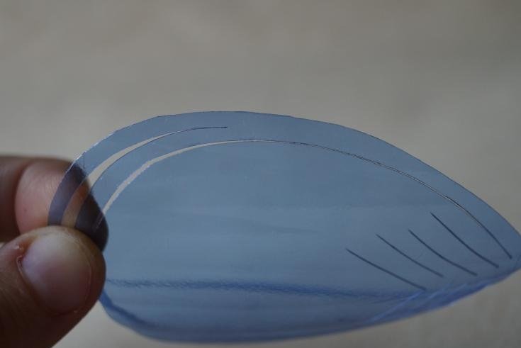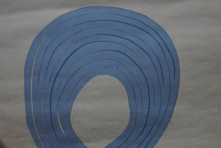 Dibujamos una botella a este nivel en un círculo hacia un plano con una marca superior, luego hacemos un semicírculo de hasta cuatro centímetros de alto en cada línea en cada plano.