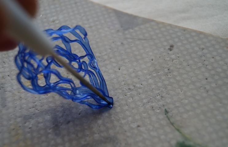 Ponemos las figuras obtenidas en una hoja normal en una celda y, después de haber retirado 0,5 centímetros a cada lado, usamos un soldador para quemar agujeros en un círculo con un trazo en una celda;