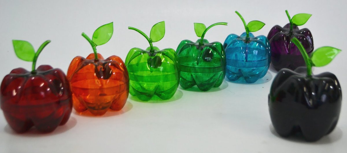 Debido a la forma del fondo, la botella de plástico es ideal para hacer manualidades decorativas: cajas de manzanas. Se puede utilizar para almacenar pequeñas cosas útiles o como decoración de una parcela de jardín.