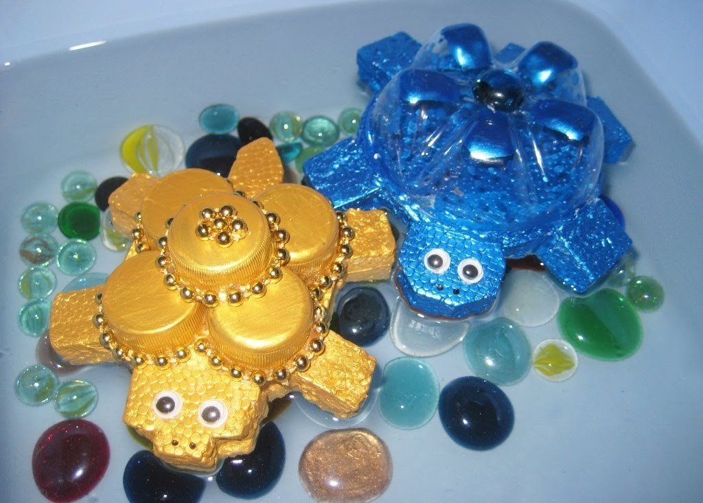 Crear figuras de animales a partir de botellas es una actividad fascinante para niños y adultos. De los cilindros y las partes inferiores recortadas obtendrá pingüinos encantadores con sombreros. Los detalles solo necesitan ser doblados y coloreados. Desde el fondo de la botella puedes hacer una tortuga. Se debe aplicar una pieza de plástico a la figura de cartón, sujeta con un hermoso hilo.La intersección de los cordones en el caparazón puede estar oculta por una flor o una mariposa.