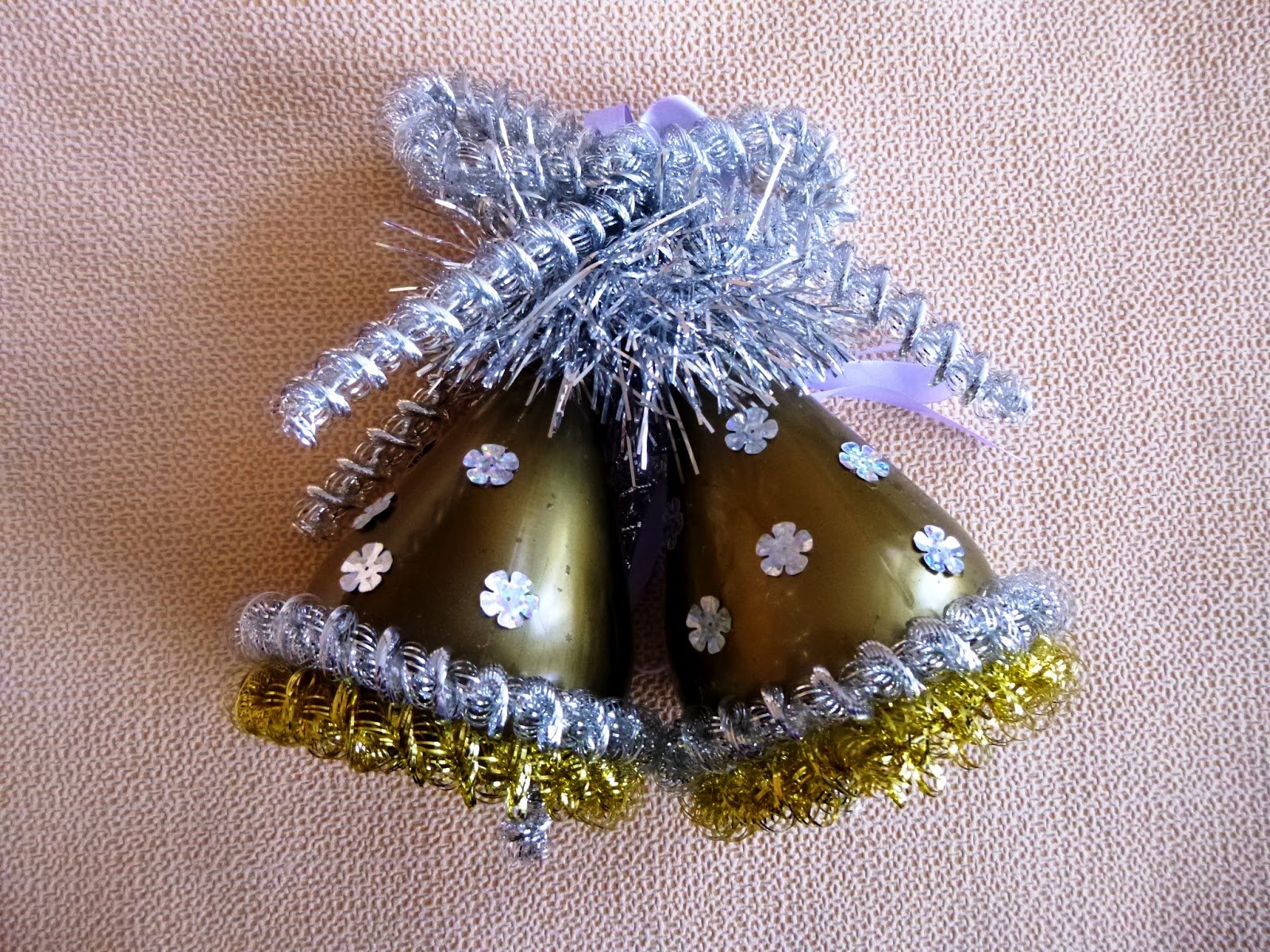 Carámbano Trabajaremos con una pieza rectangular de la botella. Envuélvala bien con un lápiz, sostenga por varios minutos. El plástico está bellamente rizado con una espiral. Para la decoración, puede usar destellos, cinta de raso.