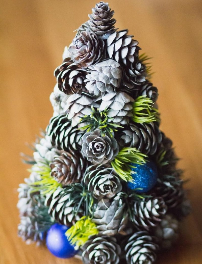 Los objetos hechos en casa diversifican cualquier interior. Los árboles coníferos se han asociado durante mucho tiempo con las vacaciones, por lo que las artesanías hechas con conos darán un ambiente de solemnidad y color. El olor en la habitación será agradable y fresco. De los conos se hacen figuras de árboles, animales, diversos objetos. Puedes usar tu imaginación al máximo y crear formas inusuales. Todo lo que se requiere es tiempo libre y una cantidad mínima de dinero. Los conos se pueden recoger con sus propias manos, y los materiales restantes se pueden comprar en el mercado de ropa más cercano. No es difícil procesarlos, lo principal es lavar y deshacerse de los pequeños insectos. Muy a menudo, se utilizan brotes de pino, abeto y cedro. En el arte decorativo se utilizan como complemento, decoración sin significación funcional. Un árbol de Navidad con conos es un elemento de decoración listo para usar, pero puede hacerlo usted mismo solo con los conos.