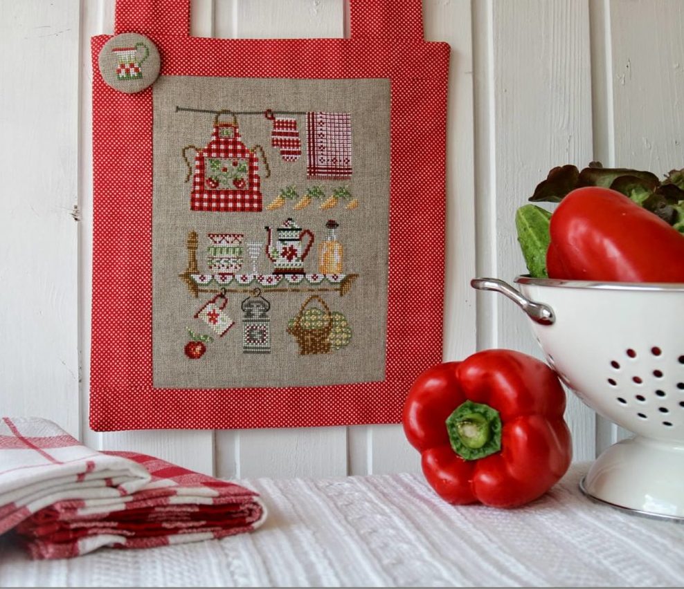 Las bolsas de textil con bordados encajarán perfectamente en el diseño general: generalmente almacenan hierbas aromáticas, especias, nueces y semillas. Los tonos cálidos aumentan el apetito, los tonos fríos lo reducen.