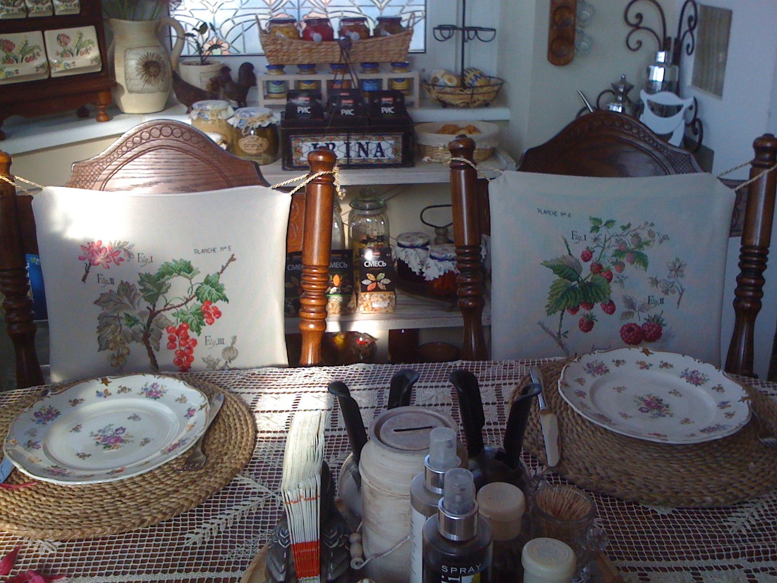 El colgador de toallas de madera con perforación especial y ganchos se decora fácilmente con adornos bordados. Delantal de trabajo, guantes de cocina, bolsas de lino para pan, paños de cocina, cortinas: todo esto debe formar un conjunto único, debe combinarse bien entre sí en color. Usualmente representado aquí: