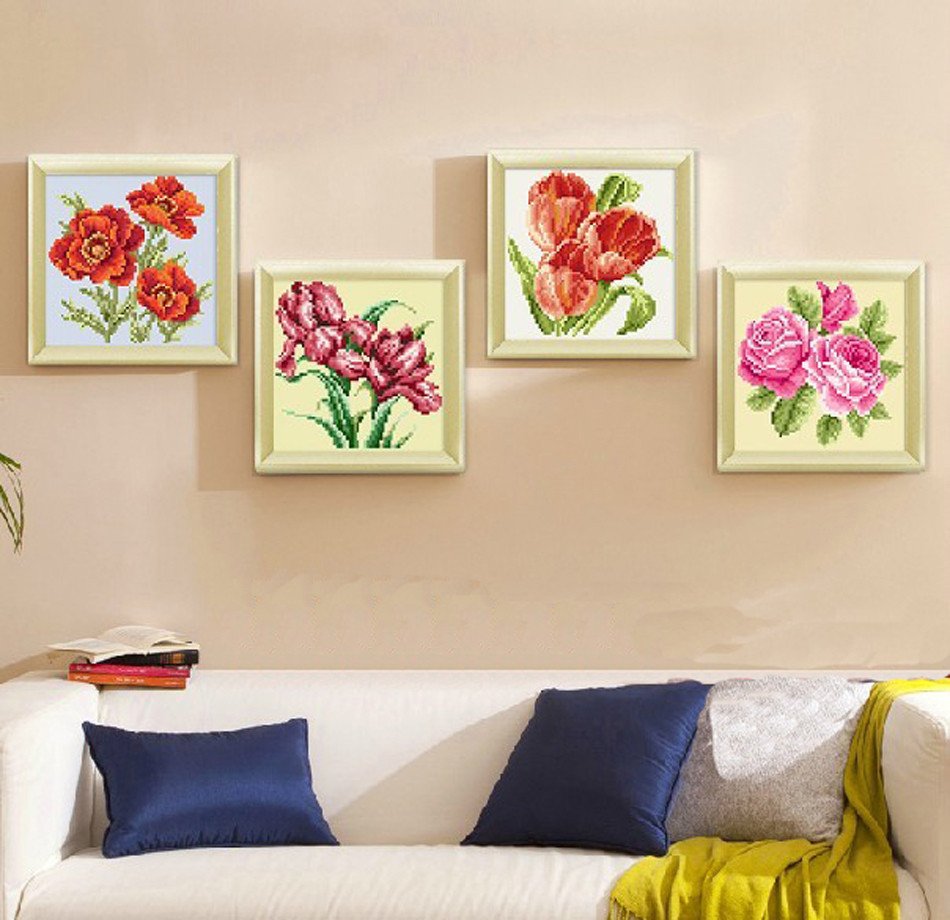 Hay muchas formas de colocación: lo principal es que los elementos bordados no violan el estilo general de la habitación, no crean desarmonía. Las pinturas complicadas bordadas con finos hilos de seda son adecuadas para interiores clásicos, barrocos, góticos y neoclásicos. Grandes adornos brillantes en punto de cruz decorarán el interior del país. Combinaciones de negro, blanco, rojo: una casa decorada en un estilo étnico eslavo, cuadros abstractos: moderno, minimalismo, futurismo.