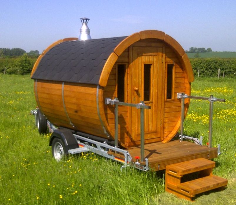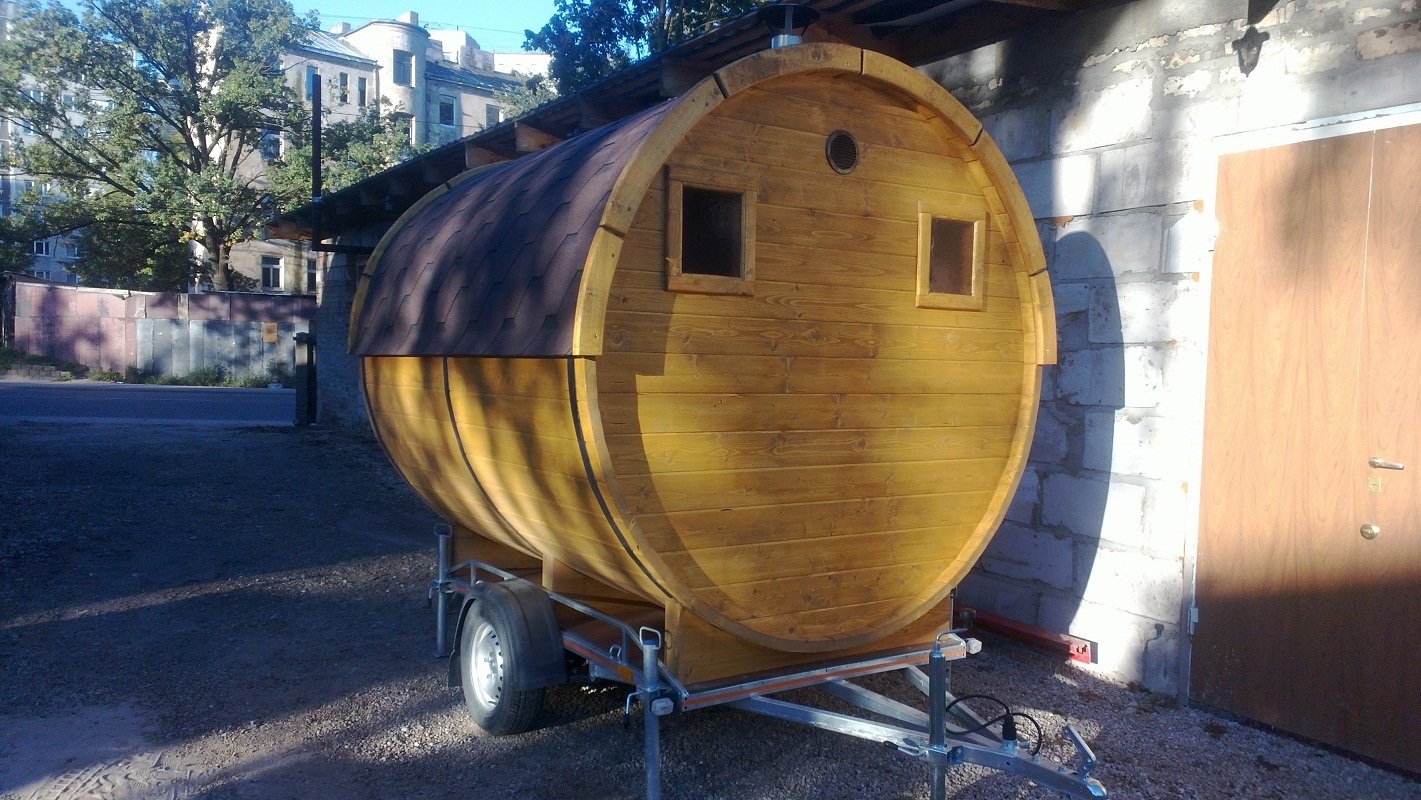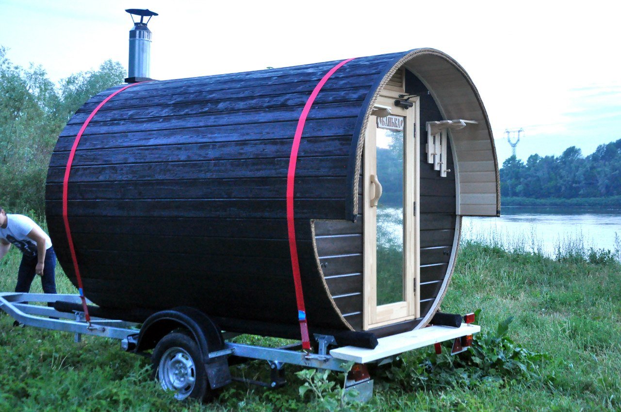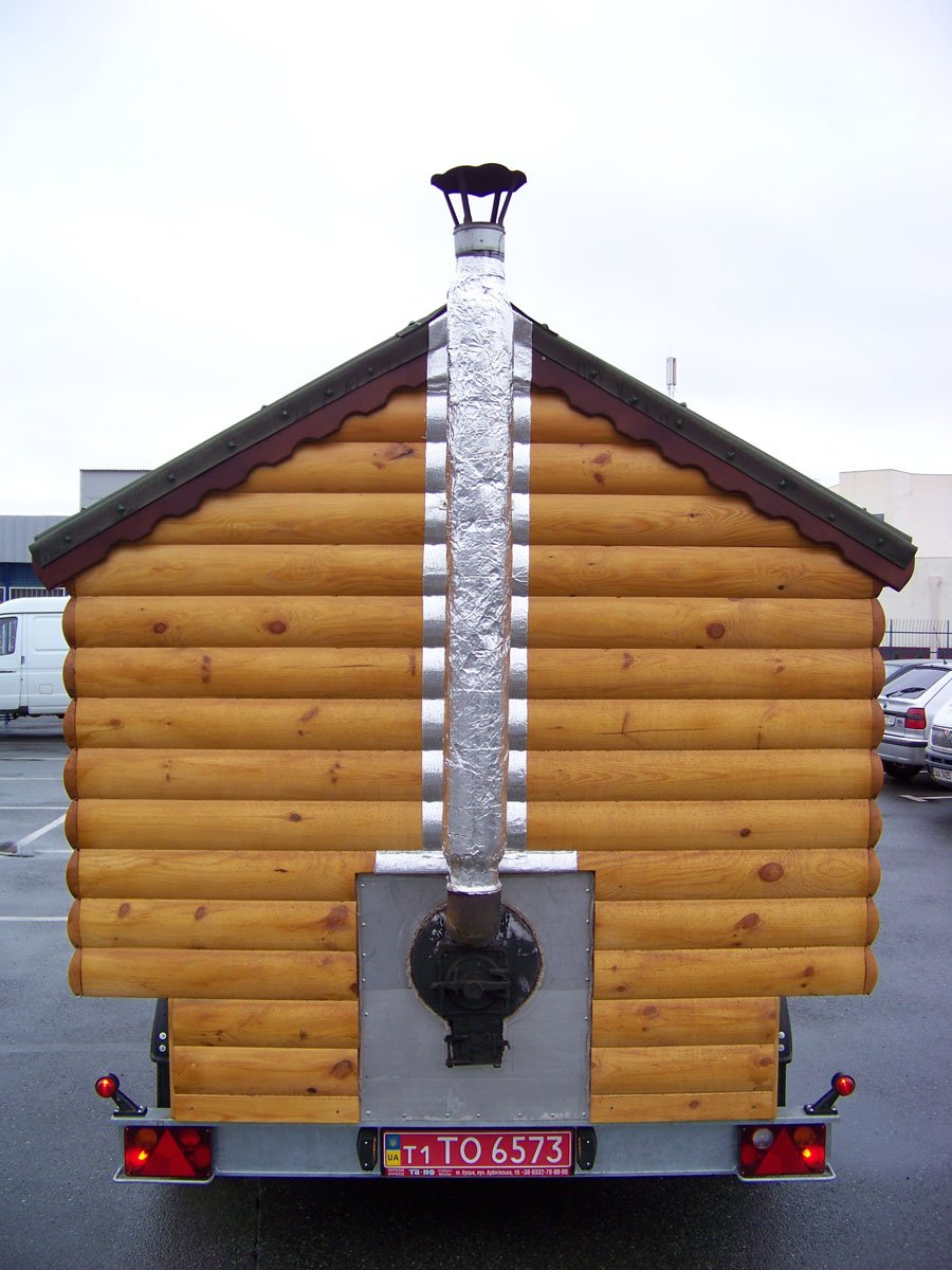 Una casa de baños rusa o una sauna finlandesa en vehículos con ruedas están hechas de todo tipo de automóviles, furgonetas, remolques de barcos.Además, se compra un vehículo remolcador para la estructura remolcada. La forma de la casa de baños se hace ordinaria, rectangular, el baño de barril, en forma de cilindro, un diseño con un borde biselado, en forma de cabaña.