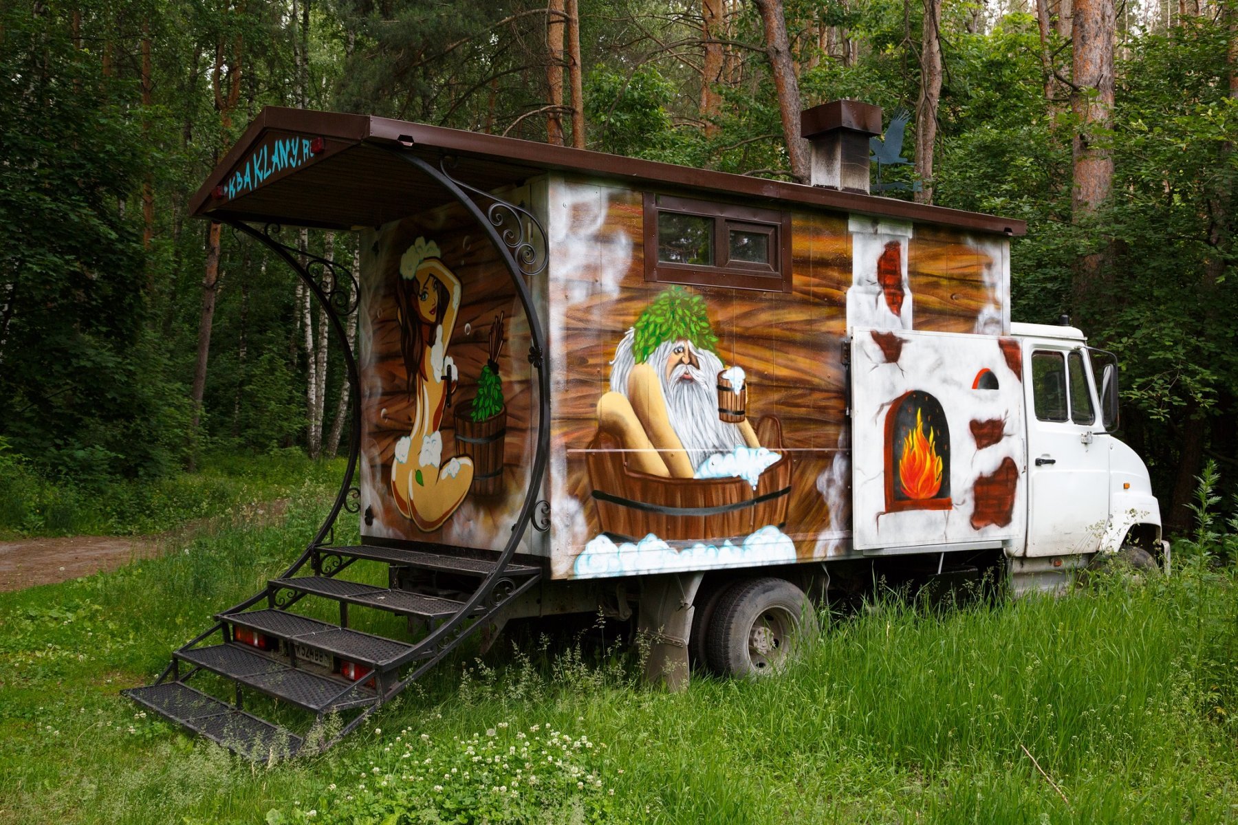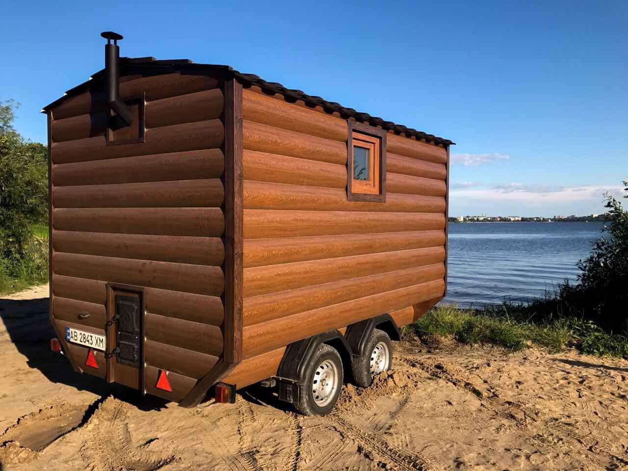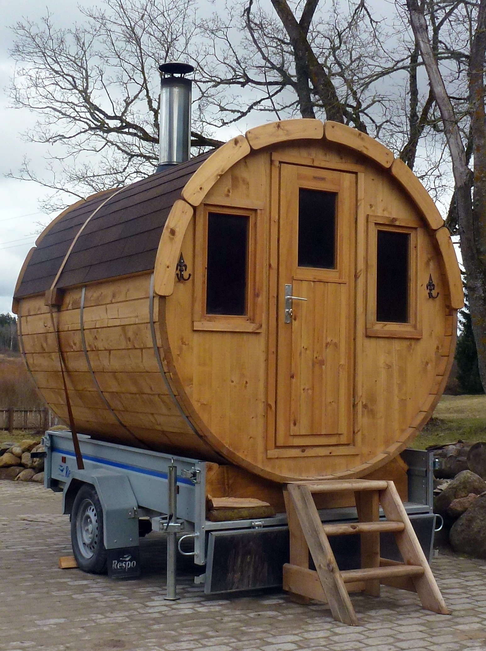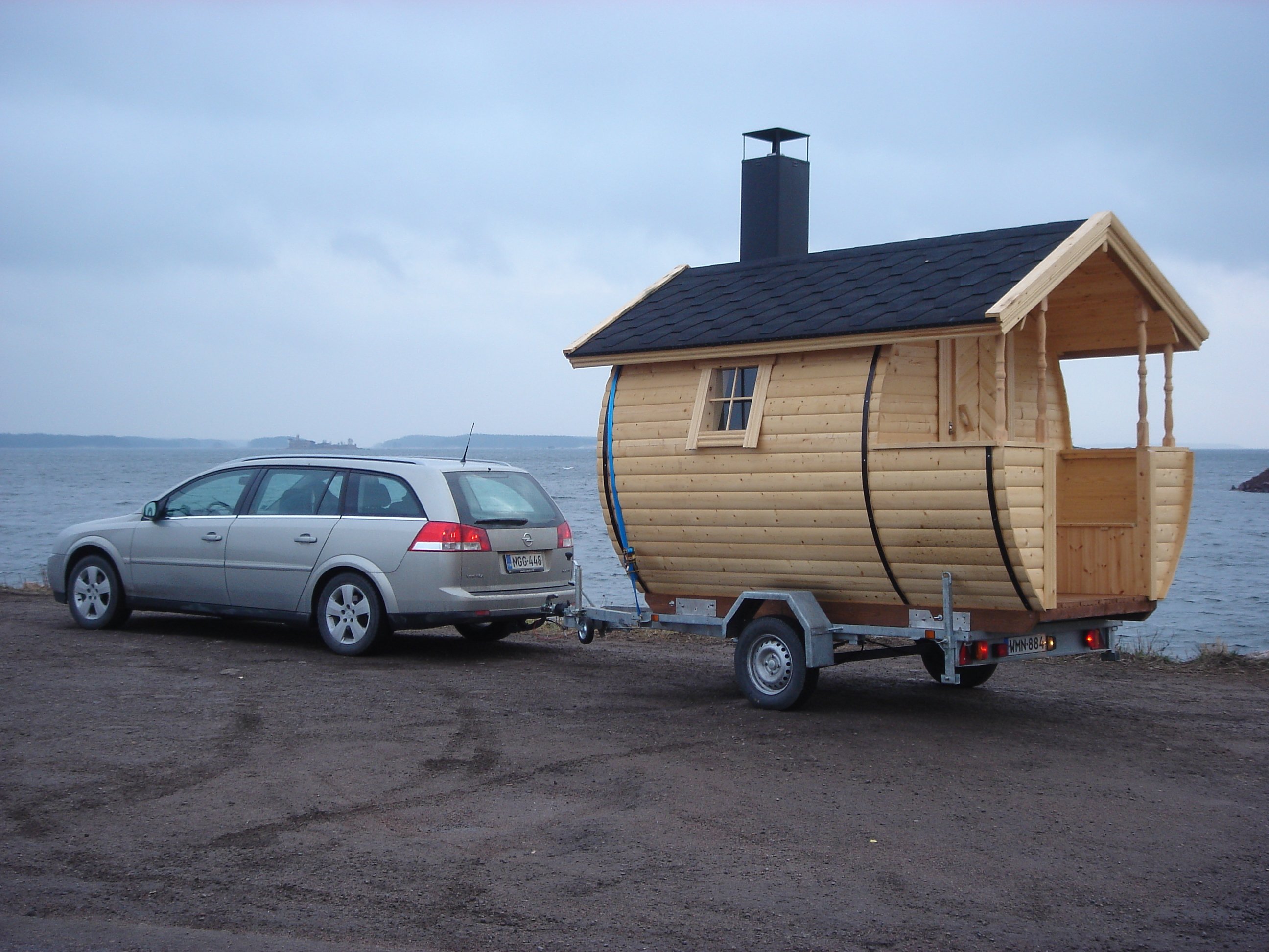 Una casa de baños rusa o una sauna finlandesa en vehículos con ruedas están hechas de todo tipo de automóviles, furgonetas, remolques de barcos.Además, se compra un vehículo remolcador para la estructura remolcada. La forma de la casa de baños se hace ordinaria, rectangular, el baño de barril, en forma de cilindro, un diseño con un borde biselado, en forma de cabaña.