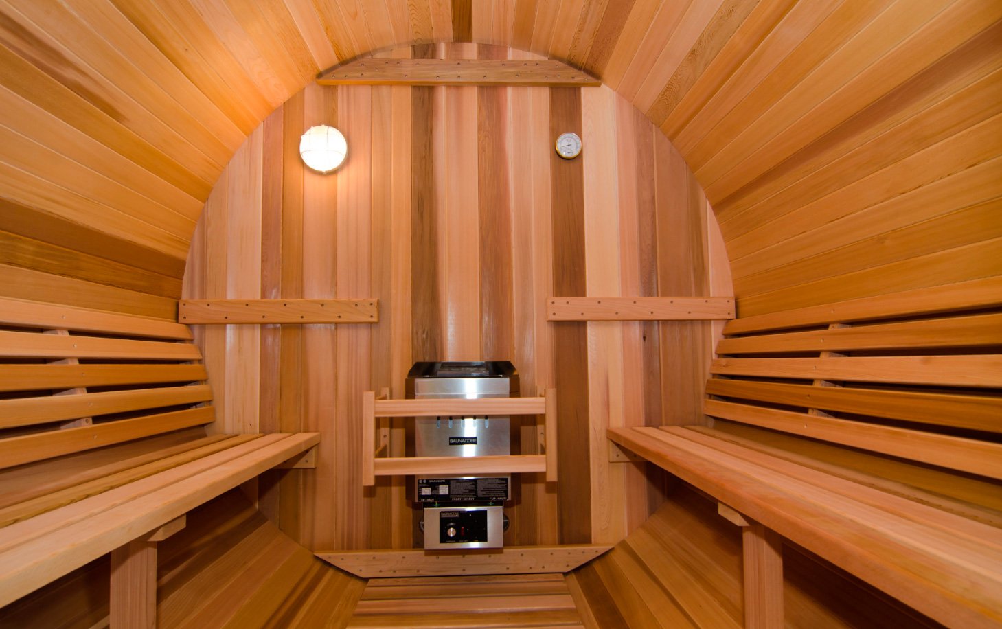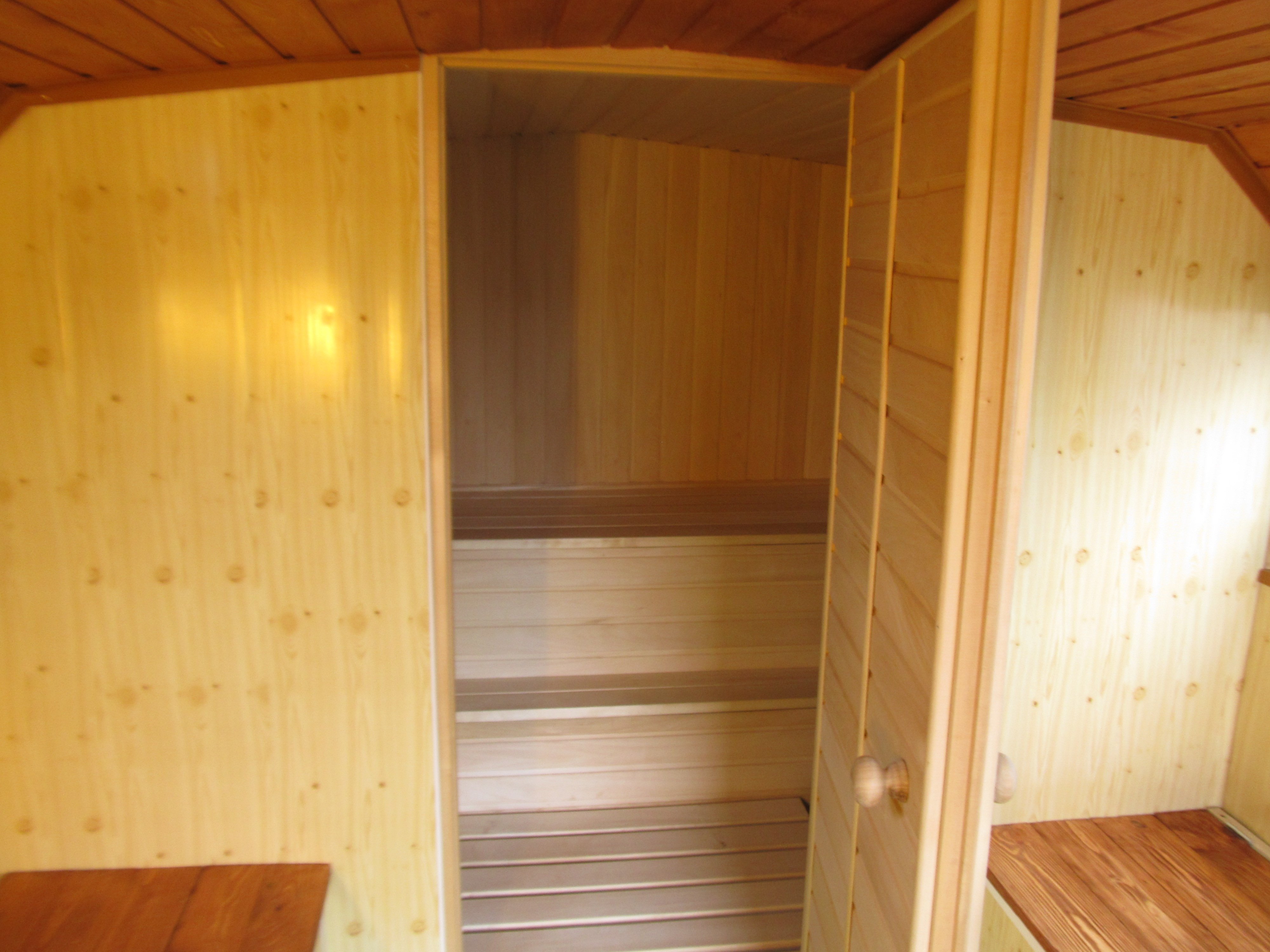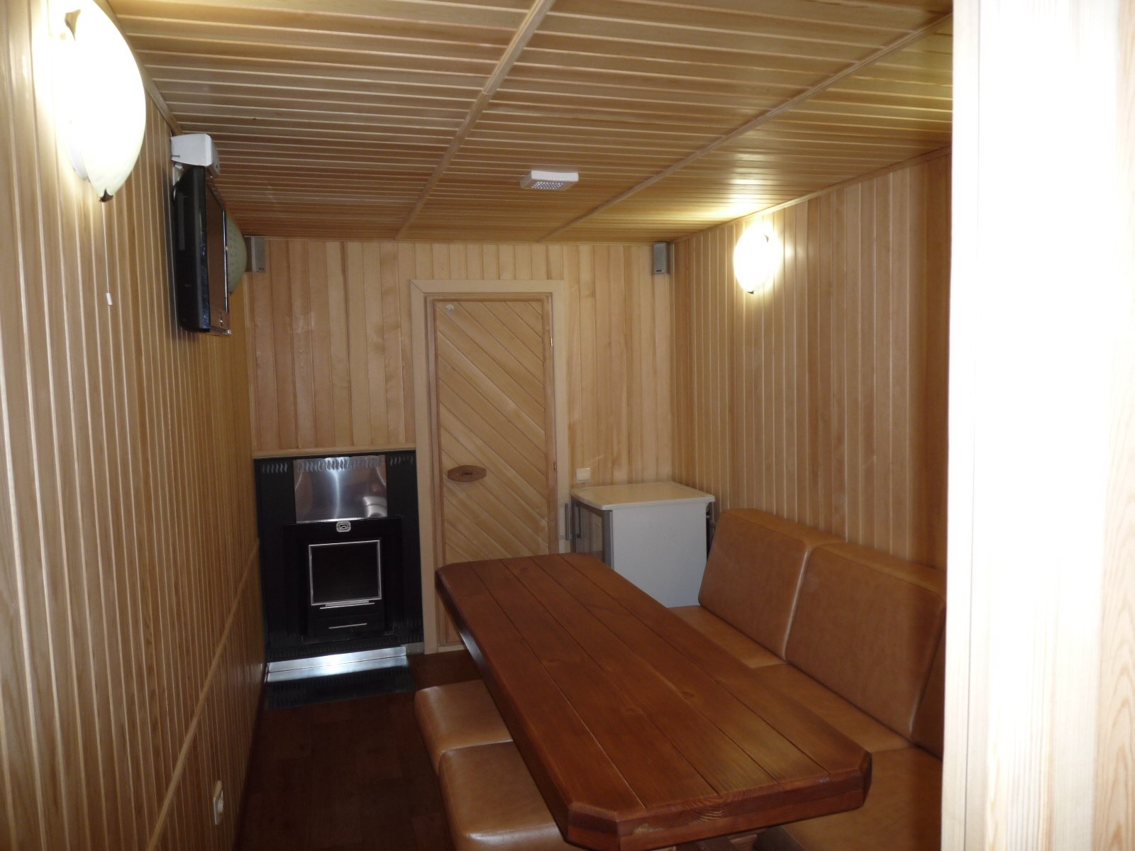 La etapa final es la creación de un interior cómodo y atractivo. Los techos son anchos, como opción: plegables. Necesariamente se necesita al menos un banco, barriles de agua fría y caliente. Para la comodidad de los vacacionistas, es recomendable organizar una ducha y un inodoro. El resto de los muebles, TV, nevera, bar están hechos si hay espacio para ellos. Bancos, estantes están montados a lo largo de las paredes.