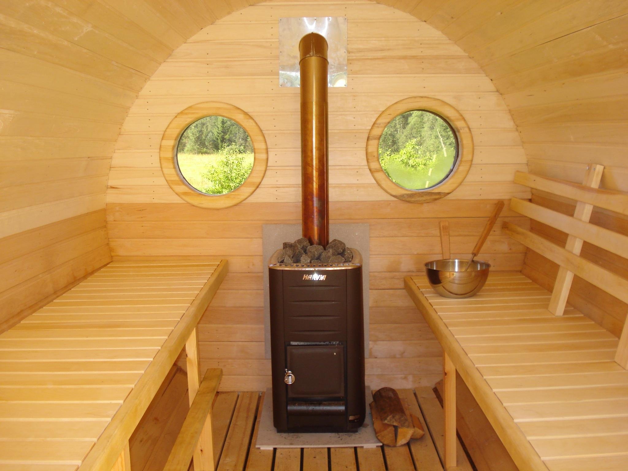De los materiales de acabado para uso exterior cedro, alerce, álamo temblón. Para la decoración de interiores, son adecuados el abedul, el tilo y muchas otras maderas duras. La lana mineral es adecuada como calentador; el piso es de madera. La habitación se calienta con electricidad, gas o madera común.Para una habitación pequeña, es adecuada una estufa de metal compacta con una potencia de 4.5 kW, en una más espaciosa, de al menos 13 kW. La chimenea está equipada con una válvula, también es necesaria la organización de la ventilación en la parte inferior del horno.