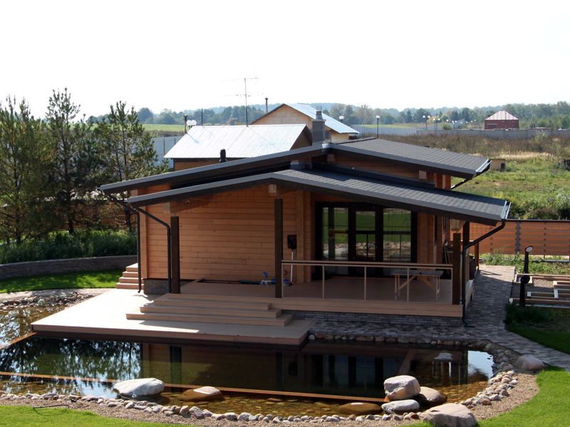 La madera sigue siendo el mejor material para la construcción y decoración. La opción a menudo se vuelve indiscutible, porque muchos propietarios quieren un baño ruso real por dentro y por fuera, y no todo tipo de instalaciones tecnológicas hechas de materiales modernos. Las maderas duras son adecuadas para la construcción y decoración de ciertas habitaciones, coníferas, para el horno y, a veces, para la sala de vapor. La mayoría de los expertos se refieren al aumento de la resistencia de las plantas coníferas a la pudrición, por lo que su madera también se utiliza para la construcción.Sin embargo, uno debe recordar sobre el aumento de engomado. La combinación de madera dura en el interior y coníferas para la construcción, así como para el horno, se reconoce como una combinación ideal. La terraza está hecha de los mismos materiales que el baño, es decir, la mejor solución es la conífera. A menudo use troncos sólidos con sujetadores en pasadores de madera.