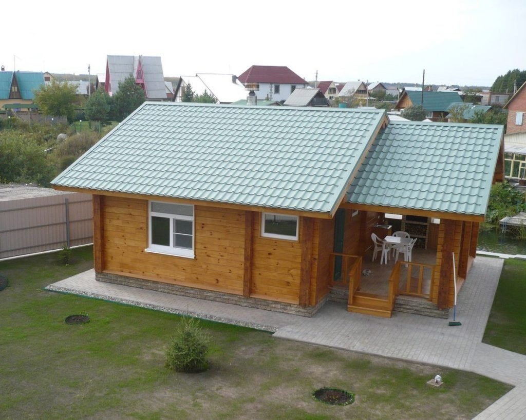 A algunos les gustará la idea de un techo inclinado para un complejo de baños y una terraza. El proyecto será simple y presupuestario, y la construcción terminada, hermosa y funcional. Una glorieta de 2,6 × 2 m no parece estar llena, y hay un lugar para barbacoa o barbacoa. La dirección del techo inclinado se selecciona teniendo en cuenta la rosa de los vientos. Como resultado, el diseño será más cómodo y estará protegido contra fugas en mayor medida que la opción de techo de cadera. Limpiar el techo no será difícil. Al mismo tiempo, un techo con un área de más de 15-20 m² es más complejo. En la práctica, los proyectos con parámetros de construcción de 6 × 4, 5 × 5, 3 × 4 y 5 × 9 m son comunes. Ahorro por metro cuadrado. un medidor en promedio será suficiente para mejorar el diseño interno.Para baños con terrazas, se elige con mayor frecuencia un proyecto de 6 × 4 m, y para la colocación adicional de la máquina (debajo de un dosel), un indicador de 5 × 9 m es suficiente.