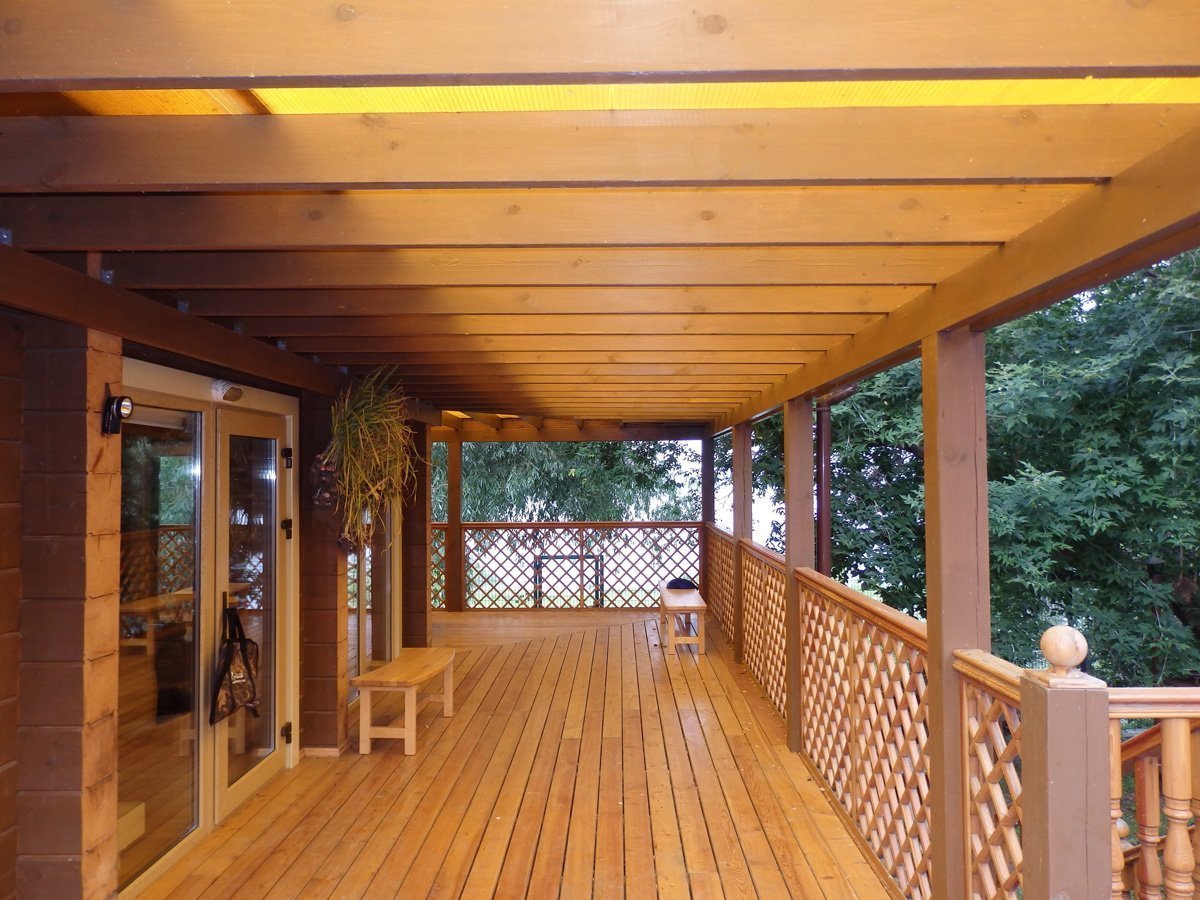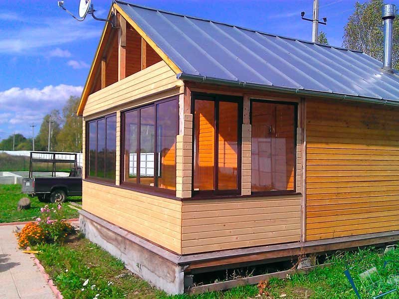 La opción es relevante en situaciones en las que una cosa ya está construida: una casa de baños o una glorieta. La casa de baños a veces simplemente se expande, pero en cualquier caso no será posible construir dos edificios sin una transición conveniente para cada uno de ellos. Para extender la vida de la estructura, se forma una base reforzada poco profunda debajo del corredor cubierto. La complejidad de diseñar incluso una transición relativamente pequeña es la necesidad de un techo de varios niveles. Será necesario incluso si los niveles de ambos techos son iguales. En cualquier caso, se requerirá un sistema de viga con indicadores de confiabilidad incrementados. No en el último lugar está la elección del sellador. Un elemento funcional original con un gran espacio para la disposición aparecerá en una casa de verano. Los propietarios no sufrirán por explorar opciones alternativas para combinar, por ejemplo, un puente curvo en lugar de una extensión.