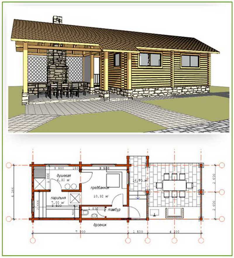 En el diseño del mini complejo de baño con cenador, debe considerar las conexiones y la distribución de la carga. La calidad de la construcción y la vida útil dependen de los cimientos. Entre todas las opciones de fundación, la más popular fue la cinta. Es adecuado tanto para estructuras pequeñas como grandes. El techo del edificio se hace liviano, porque la parte del edificio que es el cenador es débil o no realiza la función de soporte en absoluto. Sin embargo, no hay restricciones en términos de forma. Los baños generalmente se construyen de madera o madera, y en el segundo caso, es posible la construcción independiente. En el caso de los edificios de madera, la eficiencia energética no es necesaria. Un punto importante en la planificación de edificios y locales es la ubicación de muebles y accesorios en el interior. Dada la influencia del aire húmedo y cálido, se requerirá una buena ventilación e impermeabilización.