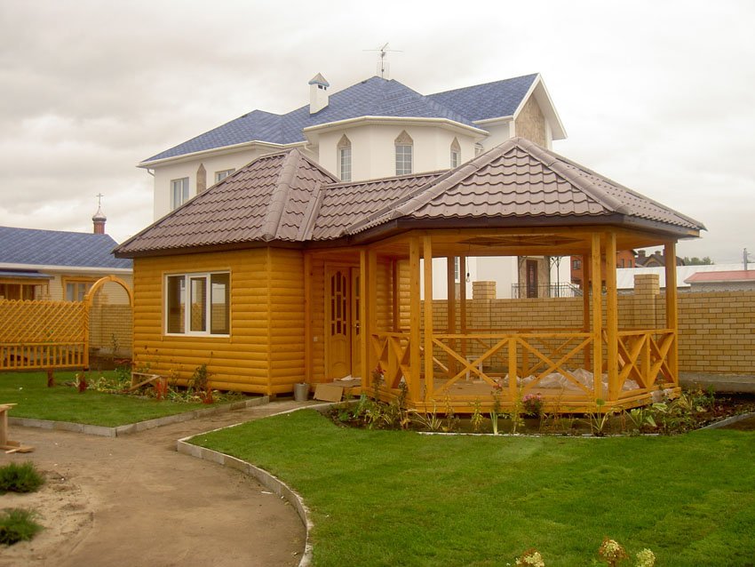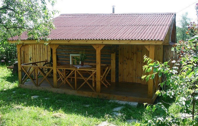 Las vacaciones de verano e invierno en el país no están menos asociadas con las vacaciones de baño. En Rusia y en muchos países del mundo, esta opción de pasar tiempo ha sido amada durante mucho tiempo, por lo tanto, incluso en ciudades pequeñas hay al menos una docena de complejos de baños. En algunas regiones del mundo, los baños con aire húmedo son más preferidos, y en otras saunas con aire seco. Lejos de la ciudad, cerca de una casa privada o en una cabaña de verano, la gente construye sus propios baños y salas de vapor. Algunas personas pueden ensamblar independientemente una estructura de registro, la opción más simple. La experiencia de los últimos años ha demostrado la rentabilidad de las casas de baños con cenadores, además de las cuales serán áreas de recreación o cocina. Debido a tal combinación, los propietarios simplifican su trabajo en el territorio y al mismo tiempo ahorran espacio. El primer paso es determinar la forma y estructura de la glorieta.