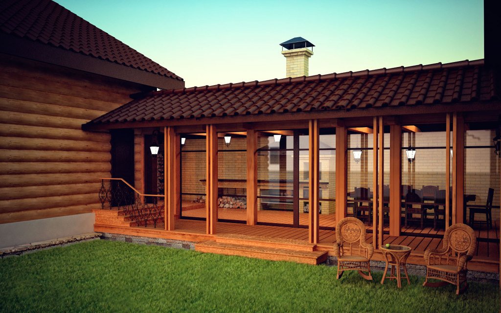 Cerca de la casa de baños, por lo general, desea relajarse y tomar un bocado. Barbacoa, estufa o barbacoa, y a veces todos juntos se colocan en la terraza incorporada. Dada toda la carga, la opción puede no estar disponible para algunas terrazas cerradas, pero solo una chimenea es suficiente, y la estructura cerrada se convierte en solo una ventaja. En primer lugar, es más conveniente comer allí: no hay tantos insectos como en la calle. En segundo lugar, en un espacio cerrado, el viento no afecta la llama, por lo que los platos se cocinan mejor. Es mejor cerrar los cenadores abiertos durante la cocción con ventanas suaves. El horno en la glorieta generalmente consiste en una estufa, ahumadero, horno y parrilla. El brasero a menudo se combina con un ahumadero. La barbacoa portátil está equipada con ladrillos, si se usa regularmente, y lo mismo puede decirse de la barbacoa. Las tiendas de barbacoa también son estacionarias en forma de horno de ladrillos y móviles comunes.