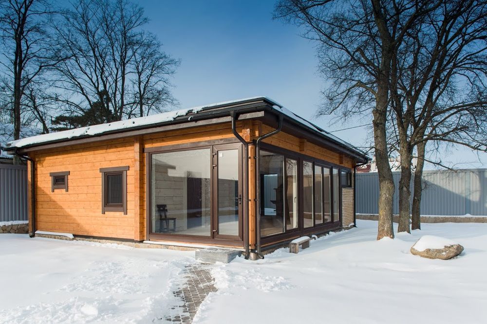 En la mayoría de los complejos de baños casi no hay ventanas, o más bien, son pequeños y se encuentran solo en algunas partes de los edificios. Al mismo tiempo, las tendencias actuales indican la popularidad de las ventanas grandes. En las cabañas de verano, puede encontrar un ático grande, pero mucho menos frecuente, panorámico. Una casa de baños con una glorieta completamente transparente costará una cantidad considerable, sobre todo debido al diseño complejo. Pero los diseñadores no se detuvieron allí. Inventaron opciones de alta tecnología, cubismo y constructivismo con acristalamiento panorámico completo. Dichas opciones atraerán más a los propietarios con un pensamiento creativo fuera de la caja, porque la conveniencia del proyecto es naturalmente cuestionada. Además, cualquier cortina en habitaciones húmedas se deteriorará muy rápidamente. Por otro lado, nada le impedirá desnudarse en una casa de baños transparente detrás de una valla alta. Los baños en estilos modernos se combinan con el diseño del paisaje y el resto de la arquitectura en el sitio.