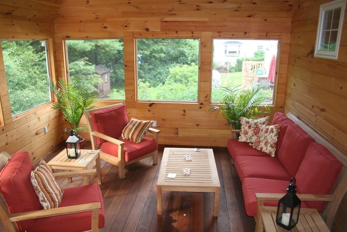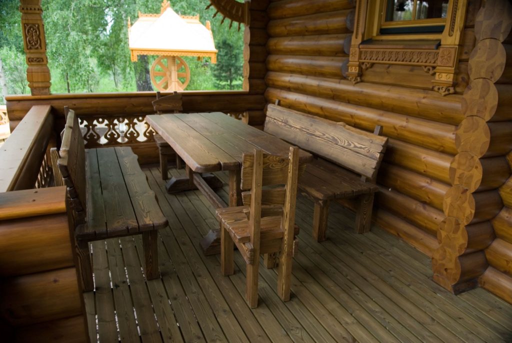 En pérgolas abiertas y semiabiertas, compran muebles de las especies más resistentes a la humedad: álamo temblón, cedro, abeto, pino. Con la fabricación independiente de muebles, necesitará tablas, barras, suvels y boquillas. La madera natural se procesa y forma cuidadosamente teniendo en cuenta el interior. Las mesas y sofás se ensamblan mejor con madera maciza. Una estantería grande y muebles plegables / prefabricados no serán superfluos en la terraza. La diferencia clave entre muebles para terrazas cubiertas se expresa en más detalles decorativos. Los elementos de los muebles se hacen más masivos: mesas, sofás, etc. Los cenadores cerrados están equipados con gabinetes colgantes, una mesa de comedor y gabinetes. La situación debe implementarse con cierto estilo.El minimalismo es más adecuado para otros materiales, excepto la madera. Junto con un baño de madera, es mejor usar muebles en un estilo clásico o de caza.